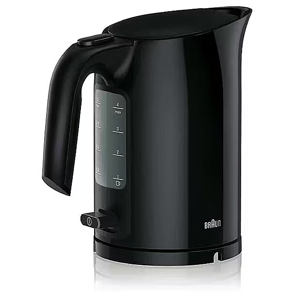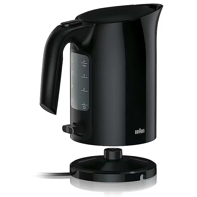 LongDesc - Braun water kettles combine a unique Braun design with a rapid boiling system for ultimate performance. With the Braun water kettle, boiling water is fast, easy and safe. Its German technology guarantees excellent performance day after day.Easy fillingThe wide front opening enables easier and direct filling from the tap.Practical flip lidLid can be opened immediately with just one touch, allowing also high opening angle.Convenient handleOptimized ergonomics allow comfortable handling, even when the kettle is fully filled.3-way protection systemAutomatic shut-off when temperature is reached, boil-dry protection and switch-off when lifted from the base.Compact designBraun’s most compact kettle fits almost every kitchen counter.Convenient cleaningRemovable and washable anti-scale filter for easy cleaning.Large water windowLarge water window to maximize visibility and allow exact filling even for 1 single cup.