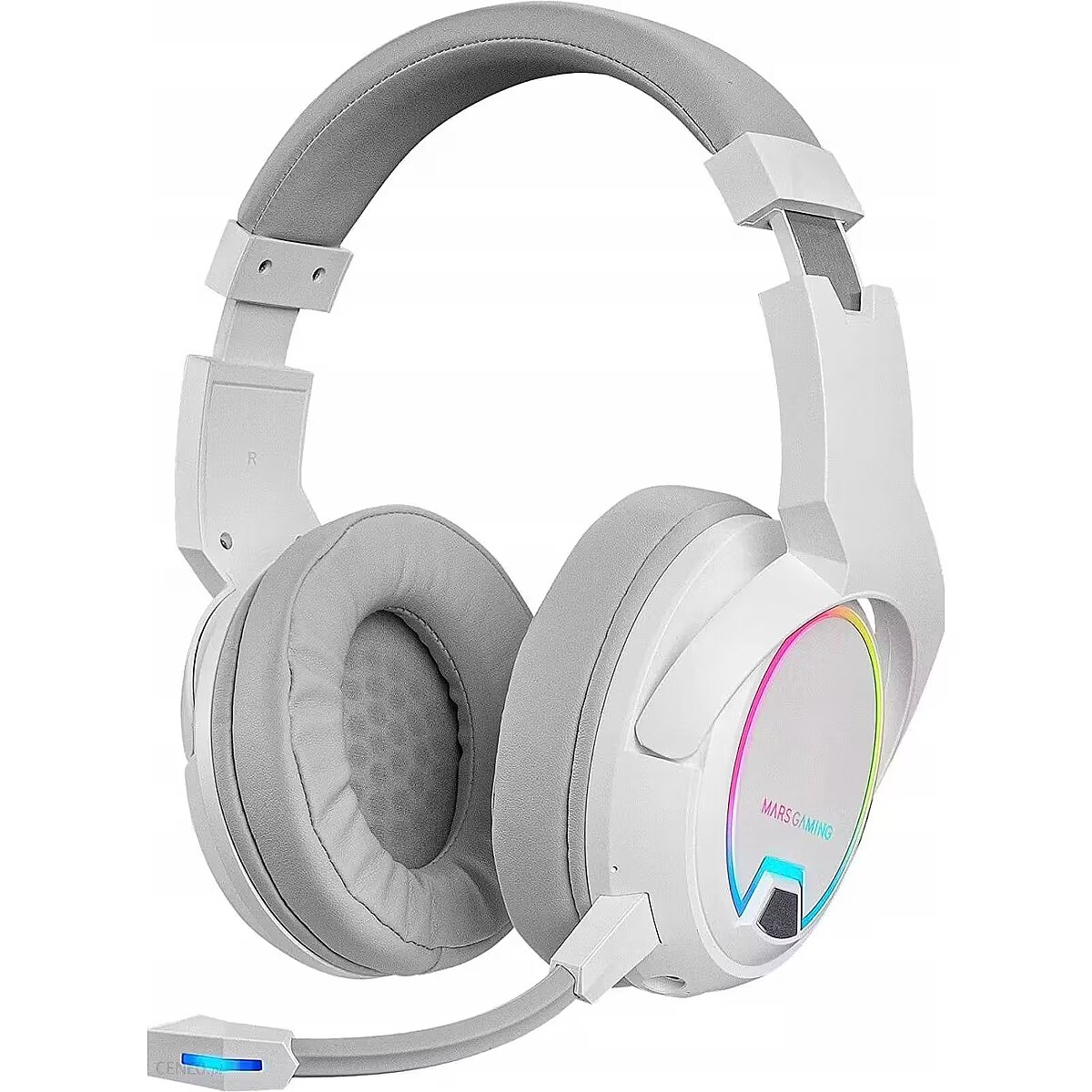 Title - Mars Gaming MHW-100 White Wireless Headset ARGB Flow Removable ENC Microphone Ultra-lightweight Active ENC + Passive Noise Cancellation Universal Compatibility