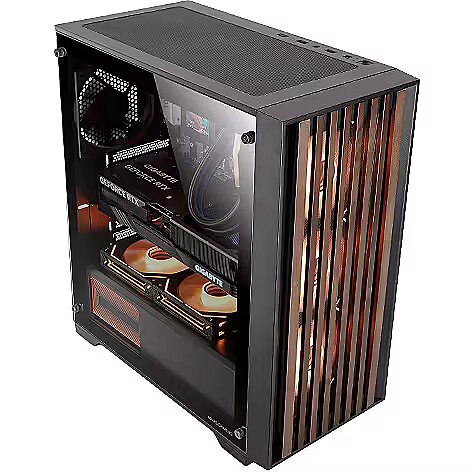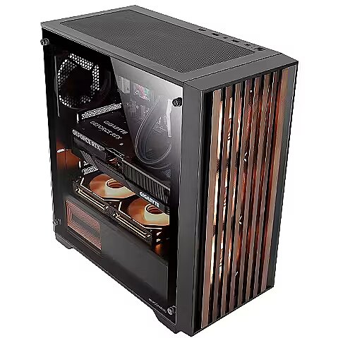 Mars Gaming MCWOOD Computer ATX Case with wooden slats / Tempered Clear Glass
