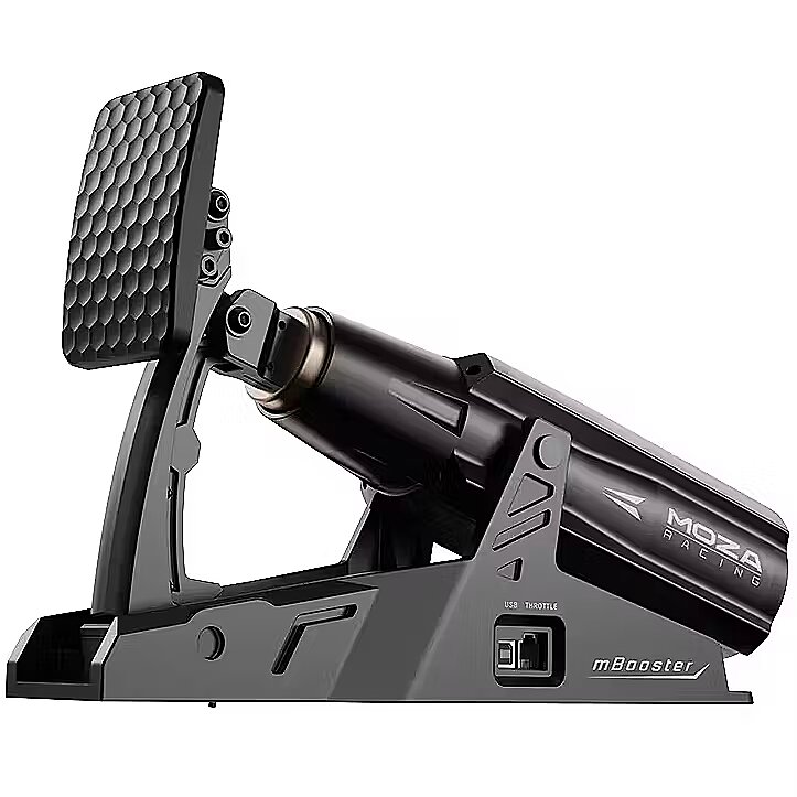 LongDesc - The MOZA mBooster Active Pedal redefines sim racing with realistic dynamic force feedback and precision control. It delivers unparalleled accuracy and responsiveness and features dual 200KG load cell sensors and a 21-bit high-resolution magnetic encoder. The high-torque density motor and MOZA Pit House software enable one-click customization for throttle, brake, or clutch functions. With adjustable pedal feel, real-time ABS, traction control, engine vibration, and G-force feedback, the mBooster ensures an immersive and true-to-life driving experience. Compatible with CRP2 pedals for enhanced performance and seamless integration with MOZA Racing ecosystems.Innovative DesignAfter years of innovation, MOZA has engineered a revolutionary structure with an advanced electronic control system. This breakthrough marks a new era in sim racing with our active pedal, delivering unmatched precision and authentic driving experience.Professional Software SupportMOZA Pit House software offers one-click presets, enabling professional precision settings quickly without the need to adjust mechanical structures. Effortlessly fine-tune basic pedal performance and advanced dynamic feedback for a seamless racing experience.Realistic Dynamic Force FeedbackMOZA's proprietary telemetry database enhances force feedback realism, delivering precise ABS feedback during braking, dynamic throttle feedback for traction control, vehicle vibrations, gearshift impacts, and G-force effects for a truly immersive driving experience.Quiet and SmoothThe MOZA mBooster Active Pedal features a high-precision ball screw, segmented servo motor, and a closed, rail-free design to effectively reduce operational friction. This results in a quiet and smooth experience, with noise levels as low as 44dB.Precise Control, Wider RangeThe MOZA mBooster Active Pedal is equipped with dual 200KG load cell sensors, ensuring ultra-precise pedal force detection with zero dead zones. This advanced technology delivers consistent, responsive braking for superior control and confidence on the track.15-Bit High-PrecisionAngle SensorsThe innovative sensor fusion algorithm combines 15-bit angle sensors with dual pressure sensors to ensure high-precision braking input and accurate brake force output.21-bit High-resolutionMagnetic EncoderEngineered with a high resolution of 2,097,152 PPR, this advanced encoder refines motor control, delivering incredibly smooth and detailed force feedback for an immersive racing experience.High Performancewith Compact DesignHigh torque density motor and lightweight materials result in smaller installation size and more convenient operation.Enhanced Pedal FeelDifferent from traditional pedals with passive feedback, the innovative active force feedback system, composed of motors and ball screws, provides strong limit force and rebound. It can simulate a wide range of pedal feel, from a road car's throttle to an F1 car's brake.One-Click Pedal CustomizationEffortlessly customize the feel of your MOZA mBooster Active Pedal with just one click. It can be used as a throttle, brake, or clutch, ensuring a driving experience tailored to your preferences. Additionally, the mBooster is seamlessly compatible with the CRP2 pedals, offering versatile and enhanced performance.Ergonomic DesignThe pedal surface features a biomimetic curved design that conforms to the arch of the foot, providing a snug fit for better force application and overall comfort.Full CompatibilityDirectly connect to PC and compatible with almost all branded bases, fully supporting MOZA's wheelbase lineup.Durable and ReliableThe mBooster system has undergone millions of simulated pedal tests, ensuring stable performance.