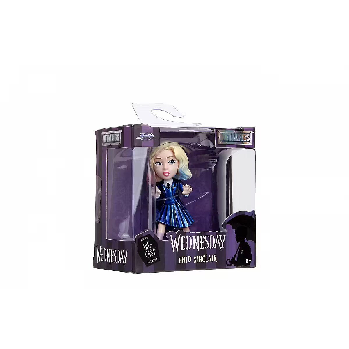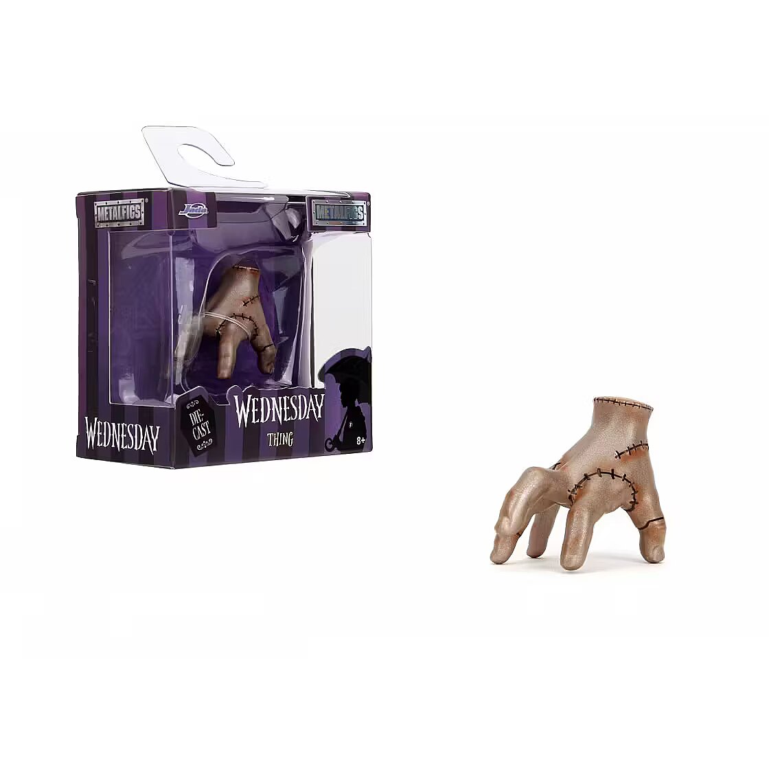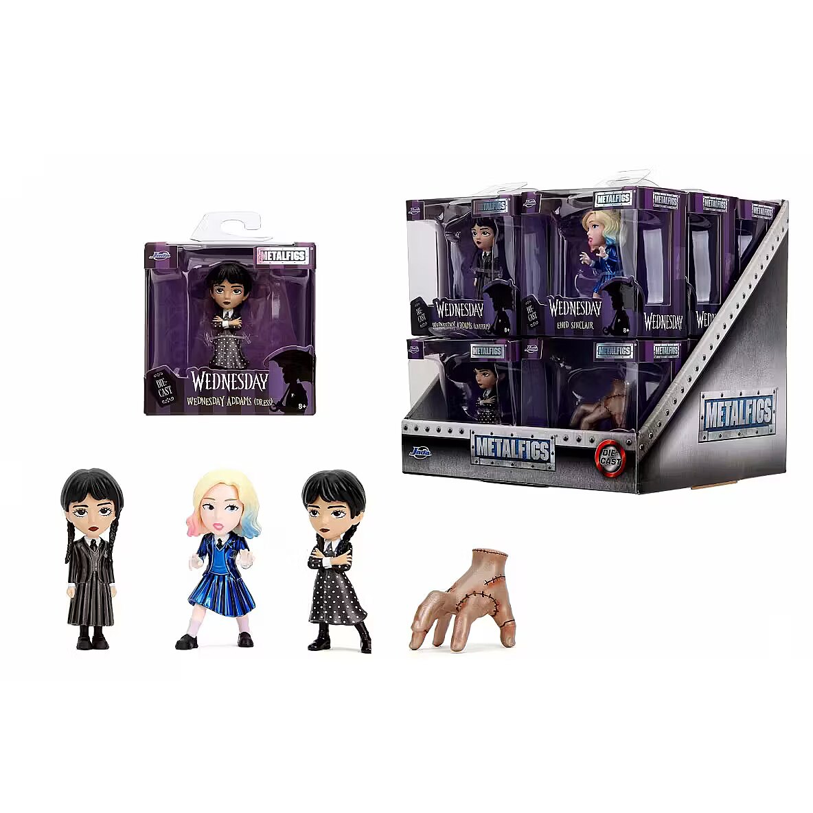 COLLECTORS' JOY: Officially licensed figures are a must-have for fans of iconic characters in pop culture, Wednesday's phenomenon is built on her individuality and independent spirit. 4 CHARACTERS TO COLLECT: Thing's Hand, Wednesday in a polka-dot dress, Wednesday in a uniform, Enid Sinclair - Wednesday's roommate and friend, who is somewhat her opposite, random shipping. FOR PLAY AND DECORATION: The figures are about 6.5 cm high, so they fit in your hand and will also work as a decoration for a child's room, they will appeal to every fan of the cult series. SOLID AND AESTHETIC: Jada figures are cast from metal and covered with the highest quality metallic paints, stand stably and look beautiful whether during play or after putting away in a collector's display case. A GREAT GIFT IDEA FOR THE YOUNGEST AND OLDER: They are ideal as a gift, will arouse positive emotions not only in enthusiasts of a brave teenager, will take you on a journey to the dark and at the same time funny world of heroes. PURPOSE: Wednesday is a symbol of rebellion against social expectations, her attitude is a manifestation of courage in being herself, a product suitable for children over 8 years of age.