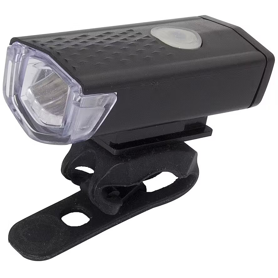 Be visible on the road! USB RECHARGEABLE STRONG WHITE LIGHT EASY MOUNTING LONG WORKING TIME THREE LIGHTING MODES SPLASH RESISTANT Power supply: built-in 800mAh battery Mounting to the bicycle frame: wrap the included strap around the frame and hook it to the handle on the other side.
