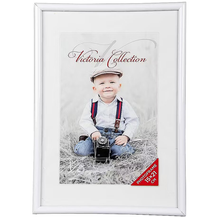 description_short_et - Kvaliteetne Victoria Collection pildiraam Valge plastikust liist Riputusaasad seinale kinnitamiseks Tugijalg võimaldab horisontaalset & vertikaalset paigutust Mahutab 15×21 cm / A5 foto
