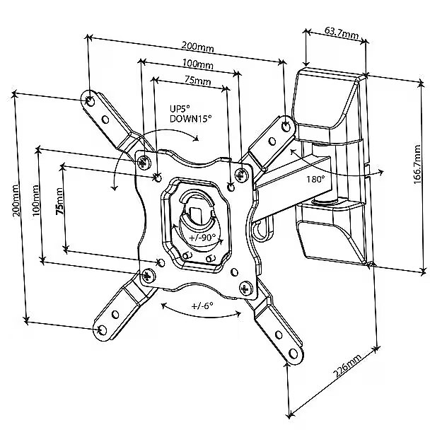description_lv - Izturīgs tērauda sienas stiprinājums televizoriem ar ekrāna izmēru līdz 43 collām. Stiprinājumu ir iespējams noliekt par -15–5° un pagriezt par ±90°. Maksimālā kravnesība 25 kg. Komplektā ietilpst visas stiprinājuma skrūves.Piemēroti ekrāni: 43" / 109 cmVESA maks.: 200 × 200VESA min.: 75 × 75Maksimālā slodze: 25 kgNoliekšanas leņķis: -15–5° (nepārtraukti regulējams)Pagriešanas rādiuss: ±90° (nepārtraukti regulējams)Attālums no sienas: 58–226 mmIebūvēta kabeļa pārvaldībaSvars: 1,1 kg