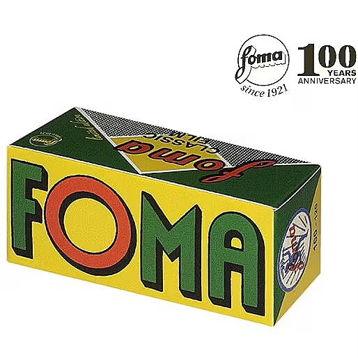 description_en - For the upcoming 100-year anniversary of the founding of the company Foma has prepared a limited edition of black&white rollfilms in beautiful packaging inspired by the design of the original boxes from the 1930s. Black & white negative film 120 medium format film ISO 100 sensitivity 12 frames B&W developing