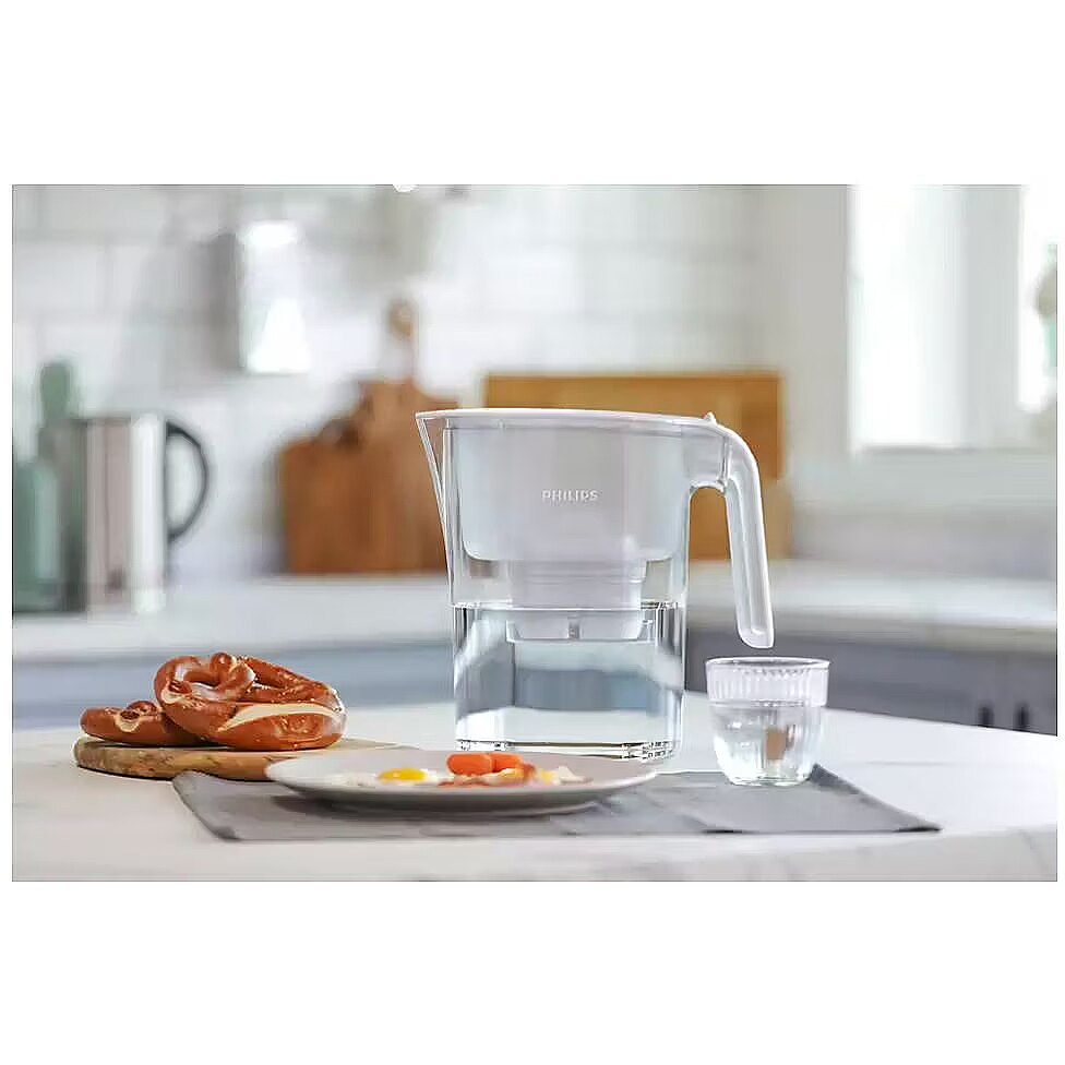 LongDesc - Delicious water at a fraction of the cost of bottled waterGreat-tasting water at a fraction of the cost and waste of bottled water.Get the best out of your waterEnjoy crisp and pure tasting water, as well as flavourful hot and cold drinks. Philips Micro X-Clean filter reduces chlorine, limescale, heavy metals and emerging contaminants such as microplastics and PFOA.Flip top lid for single-handed refillDust-proof spout keeps water fresh and cleanBy preventing dust from getting in through the water outlet, the dust-proof spout keeps the water fresh and clean.Prolongs the lifetime of kitchen appliancesProlongs the lifetime of kitchen appliances by preventing limescale build-up.