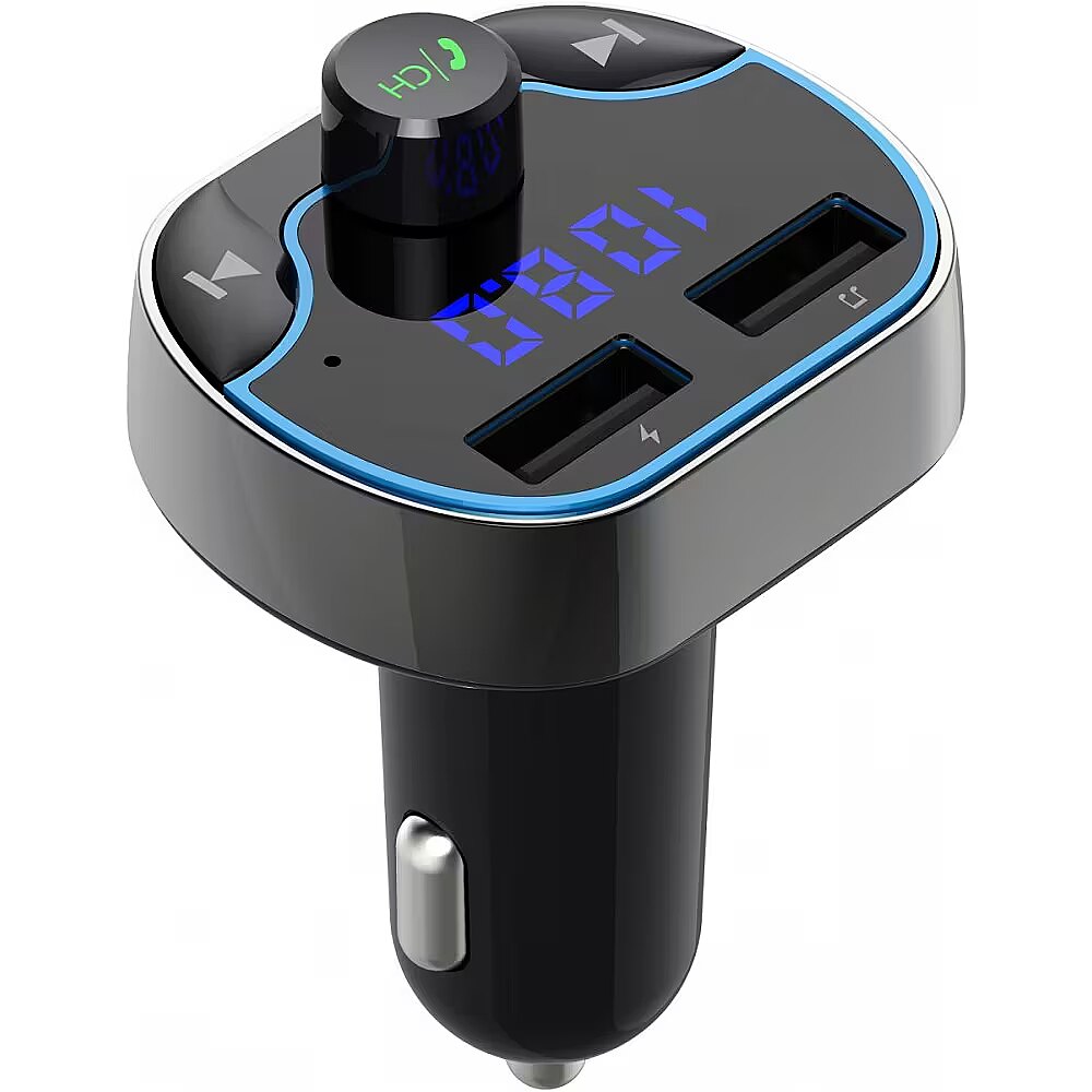 Other features - 2 złącza USB (1 do muzyki w formacie MP3, 1 główne do ładowania) Wejście na karty micro TF / SD (obsługa do 32 GB) Bluetooth V4.2 Porty ładowania USB: DC 5 V / 2,4 A max. Zintegrowany mikrofon do rozmów Cyfrowe strojenie i wyświetlanie częstotliwości Miernik napięcia w zestawie ładującym pojazdu Ilość częstotliwości FM: 206 Zasilanie: DC 12~24 V (zapalniczka samochodowa)