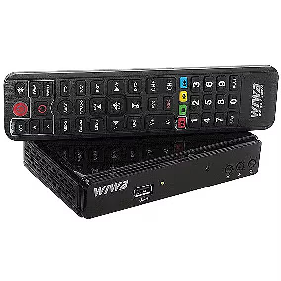 Nowoczesny tuner drugiej generacji WIWA H.265 obsługuje darmowe kanały nadawane w naziemnej telewizji cyfrowej w najnowszej technologii H.265/HEVC. Jest to standard, który będzie obowiązywał w Polsce. Tuner jest kompatybilny ze starszymi technologiami H.264 i MPEG-4, które są aktualnymi standardami nadawania w Polsce. Tuner sterowany pilotem z funkcją Memo Control (programowalne przyciski umożliwiające obsługę dekodera i odbiornika TV jednym pilotem). Sprzęt posiada podstawowe przyciski funkcyjne na panelu przednim. OSD w języku polskim - wyświetlane na ekranie telewizora, przejrzyste, intuicyjne, łatwe w obsłudze. Tuner gotowy na wszystko