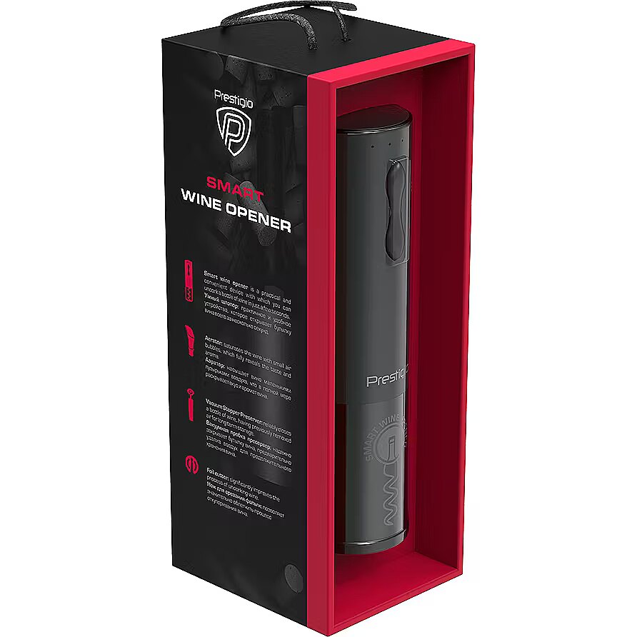 Prestigio Bolsena, Electric wine opener with Prestigio Logo, aerator , vacuum preserver, Black color