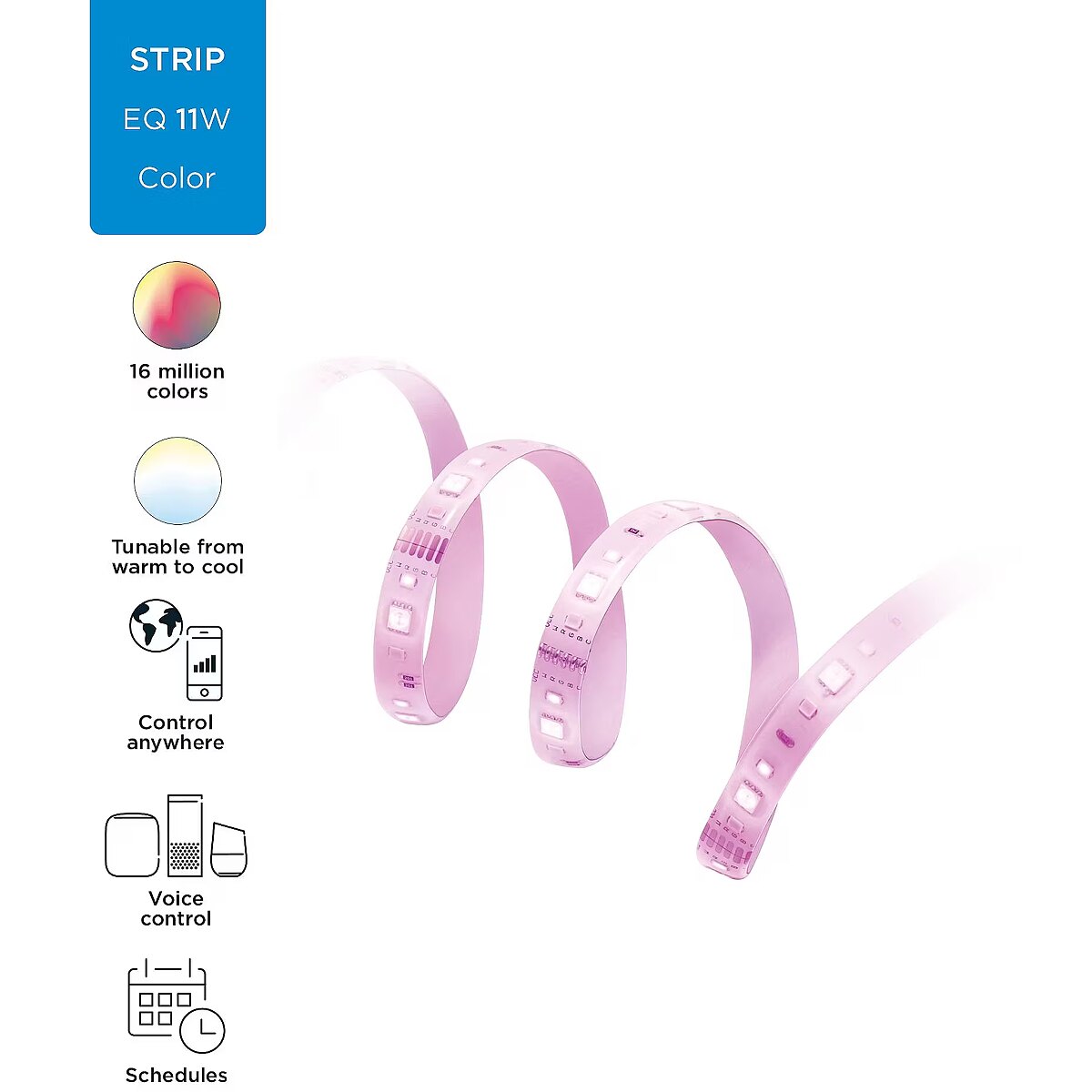 LongSummaryDescription - WiZ 8719514261082A. Interface: Bluetooth, Product colour: White, Bulb type: LED. Input voltage: 12 V, Output voltage: 12 DC, AC input voltage: 12 V. Width: 12 mm, Depth: 1000 mm, Height: 2.2 mm. Package width: 7.5 mm, Package depth: 4.5 mm, Package height: 16 mm. Placement supported: Indoor