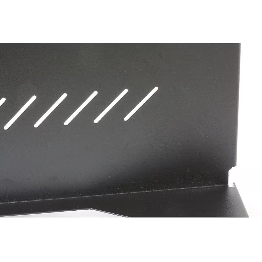 Dane techniczne: Dodatkowe informacje - Perforowacja półka, przednie mocowanie na szynie Rack 19", kolor czarny