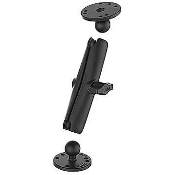 Description - RAM B SIZE 1" BALL ON 2.5" ROUND PLATES WITH AMPS HOLE PATTERN, LONG LENGTH DOUBLE SOCKET ARM