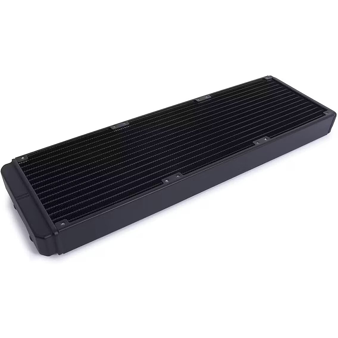 Technical_details - ES Aluminum 420mm T38, radiator The ES T27 and T38 radiators from Alphacool's ENTERPRISE SOLUTIONS series are made entirely of aluminum and were specially developed for use in the industrial sector. Due to the low overall height of 27 mm or 38 mm, they find space in the tightest of spaces and enable water cooling of technical systems in the automotive industry, in mechanical engineering or in the production of films and videos. High performance: Compared to Alphacool's full copper models, all ES T27 and T38 aluminum radiators have additional cooling channels. This technical structure allows a significant increase in cooling capacity without restricting the water flow within the radiator. The radiators have a high fin density and are particularly suitable for use with fans with high air pressure and air flow. This achieves a significant increase in performance of the water-cooled components. The radiator offers an input and output (IN/OUT) with a G1/4" thread. The radiator comes with screws for the housing attachment (M3x5) and for the fan assembly (M3x30). Additional screws are not required for one-sided fans. Type: 420mm radiator Color: Black EAN: 4250197144346 Manufacturer number: 14434 Type: Radiator Application: For industrial area Material heat sink: aluminum Radiator size: 3x 140 mm Additional information: Connection thread size: 2x G1/4", fan thread: M3 Note: This is an Enterprise Solutions Aluminum product. The ES aluminum radiators must not be used together with water cooling products made of copper (radiator, connectors, etc.). Using aluminum & copper components together will cause serious damage to the water circuit. Dimensions: Overall | Width: 140mm x Height: 38mm x Depth: 456mm Weight: Total | 1 kg