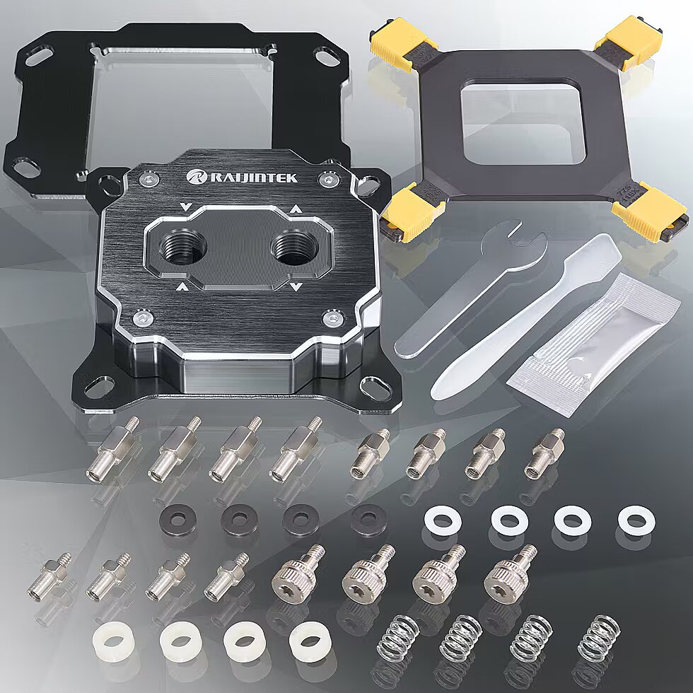 Technical_details - FORKIS ELITE, CPU cooler The CPU water block from RAIJINTEK from the FORKIS series is made of copper, which has been melted through a special alloying process. With 3D micro-fin structure customization and alloy soldering, it is a top-level solution for PC enthusiasts and custom PC modders to create a DIY water cooling system. FORKIS offers excellent heat transfer and improves temperatures on your CPU. Not only the entire product has been nickel-plated, but also the high-quality polished mirror base allows excellent surface contact with the heat source. The solid universal backplate not only prevents the motherboard from bending, but also features a highly compatible installation for all modern CPUs. User-friendly installation, excellent heat dissipation, high compatibility with modern CPU's and a unique design. Type: water block EAN: 4715109923216 Manufacturer number: 0R40B00201 Type: CPU Water Cooler Usage: for water cooling Suitable sockets: 1150, 1151, 1155, 1156, 1366, 2011, 2011-3, 775, AM2, AM2+, AM3, AM3+, AM4, 2066 Material heatsink: aluminum, nickel-plated copper Dimensions: Overall | Width: 82mm x Height: 16mm x Depth: 82mm Weight: Total | 495 grams