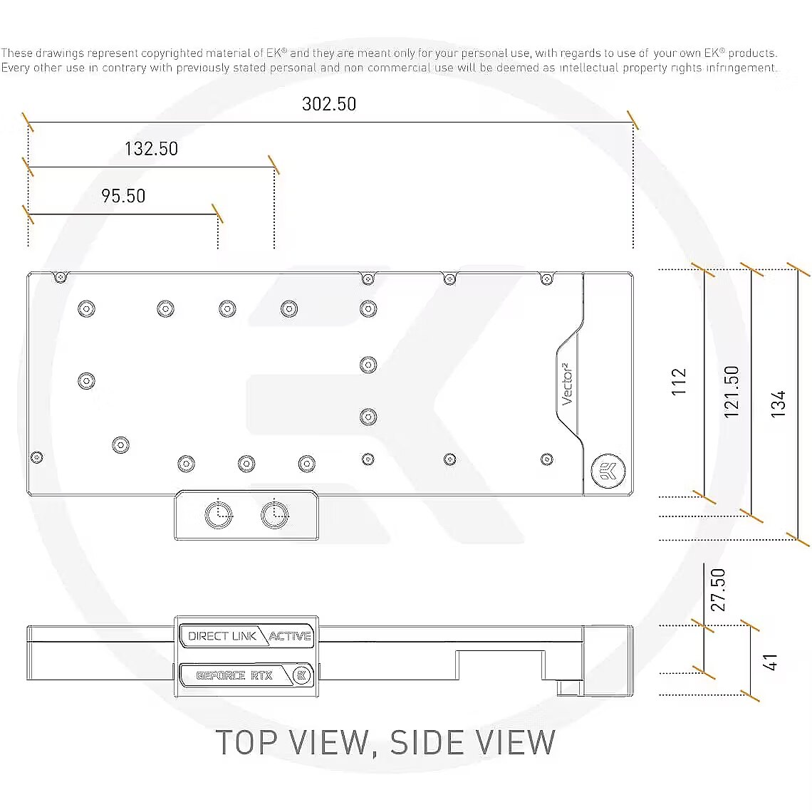 Technical_details - Type: back plate Colour: nickel/transparent EAN: 3831109892268 Series: EK-Quantum Type: graphics card cooler Application: for EK-Quantum Vector2 XC3 RTX 3080/90 D-RGB - nickel + acrylic water blocks Features: thermal paste/pad, LED lighting LED lighting: Yes, addressable RGB headers : RGB RGB Standard: AURA Sync, Mystic Light, RGB Fusion, RGB LED Material heatsink: aluminum, acrylic, nickel-plated copper More information: D-RGB LED lighting is located on the longest edge of the water block for more uniformity and brightness. The circuit board and diodes are hidden inside a clean aluminum profile. The individually addressable RGB LEDs are compatible with the common RGB synchronization technologies of all major motherboard manufacturers. The arrow mark on the 3-pin D-RGB LED connector must be aligned with the +5V mark on the D-RGB header (addressable). Note: This product can only be installed with EK-Quantum Vector2 XC3 RTX 3080/90 D-RGB - Nickel + Acrylic. Accessories: screws, nuts, washers, multi-hex wrench (6mm, 8mm, 9mm), thermal pads Dimensions: Width: 41mm x Height: 134mm