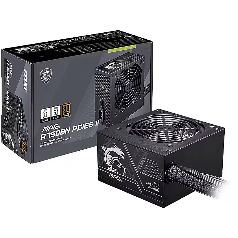 - Power supply unit (PSU): MSI MAG A750BN PCIE5 II, 750W, 80PLUS Bronze, ATX 3.1, PCIe 5.1