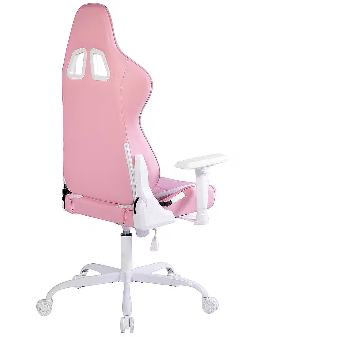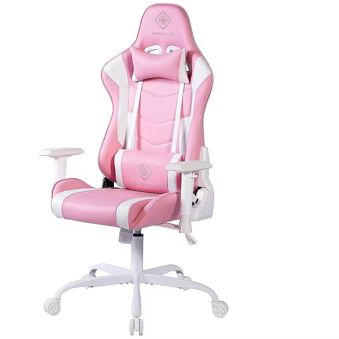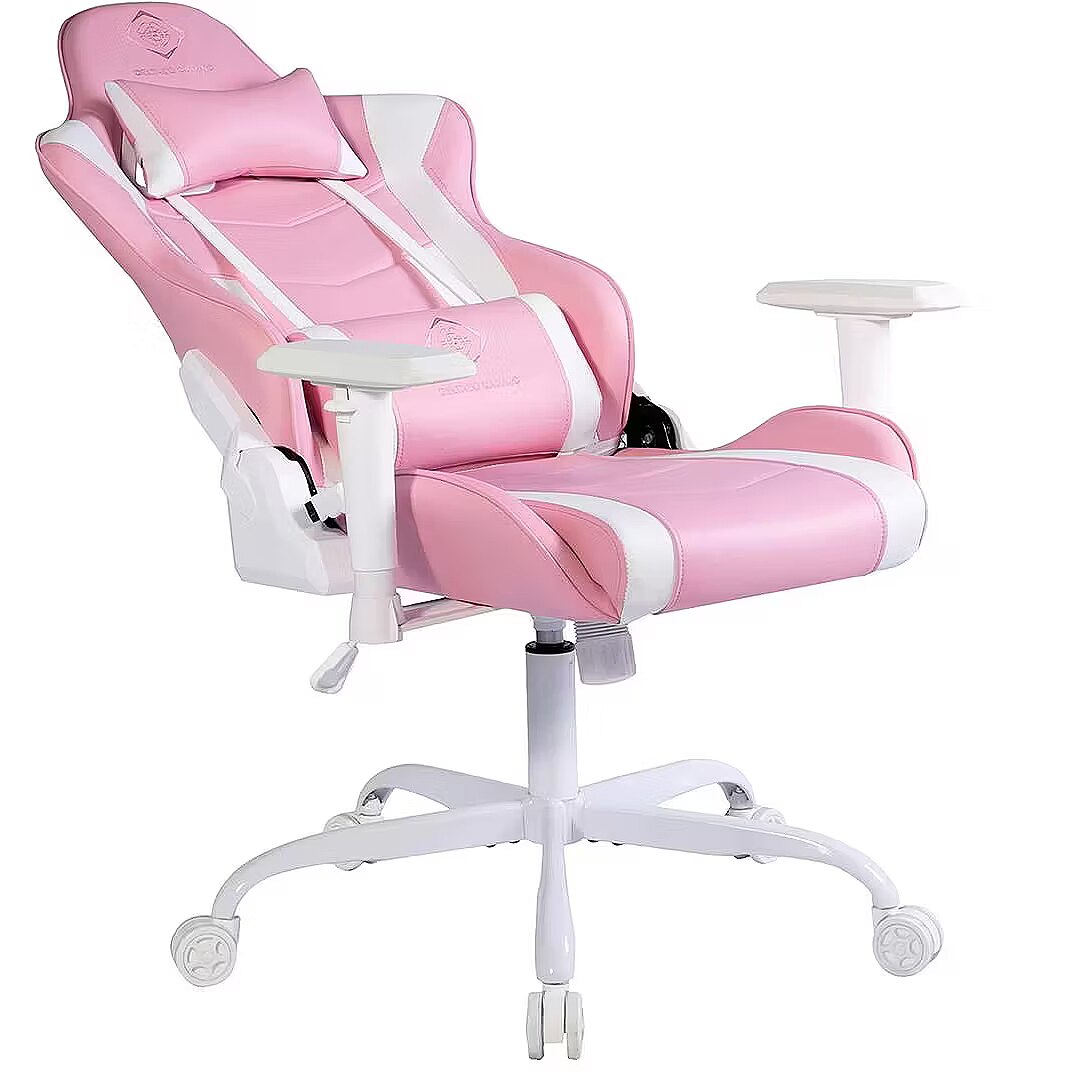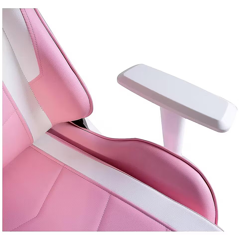 MediumDescription EN - Gaming chair in stylish pink PU-leather with ergonomic similarities to a racing chair. With a high back and extra pillows for the headrest and backrest, you will avoid back and neck problems after countless hours in this chair. The chair is of course adjustable, as are the armrests. The pillows for the back and neck can also be adjusted for the best fit.