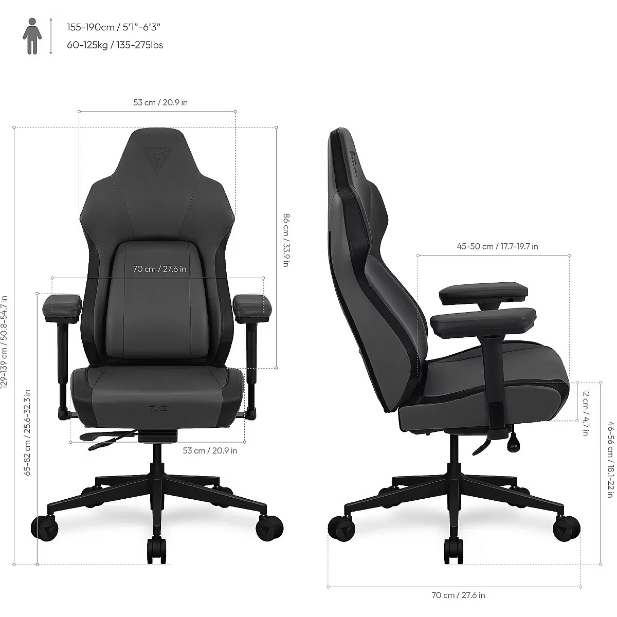 • Maximum load capacity: 125 kg