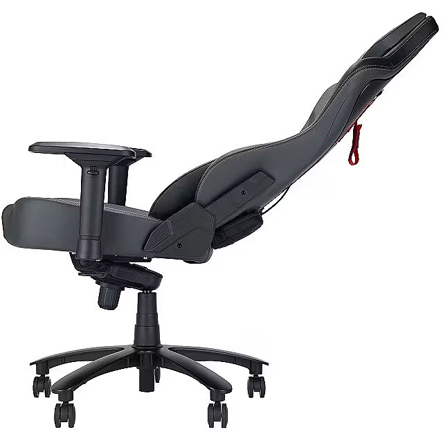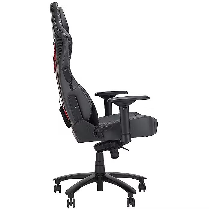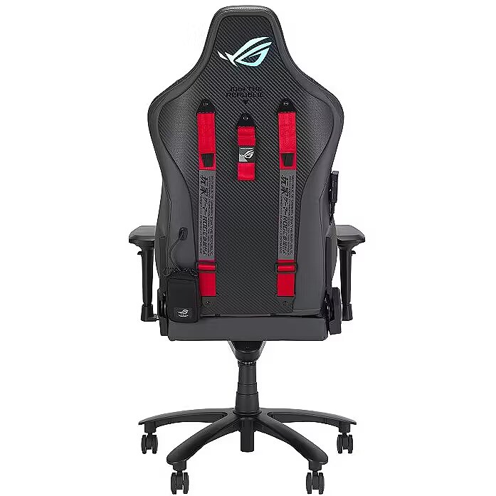 Description - ROG Chariot X SL301W ROG Chariot X gaming chair in racing-car style, featuring an adjustable high-density foam headrest, memory-foam lumbar support, 4D armrests, tilt mechanism, durable Class 4 gas lift, and durable premium PU leather for a premium gaming experience. Integrated ASUS Aura RGB illumination with multiple effects and colors for vibrant and dynamic gaming experiences. Intuitive one-touch controller to easily switch between Aura RGB colors and effects Ergonomic design with high-density foam headrest and memory-foam lumbar cushion for ultimate comfort. 4D-adjustable armrest and up to 155°-recline backrest, plus articulated tilt mechanism to increase gaming immersion. The Premium PU leather offers improved abrasion resistance and lasts for more than 5 years Convenient rear hooks infused with ROGs gaming style and spirit Constructed from tactile leatherette and high-density, cold-cure foam for superb durability. Superior safety provided by all-steel frame, Class 4 gas lift, durable PU casters and aluminum-alloy, five-star base.