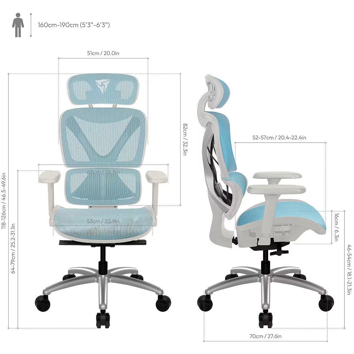 • Recommended height, min. cm: 160