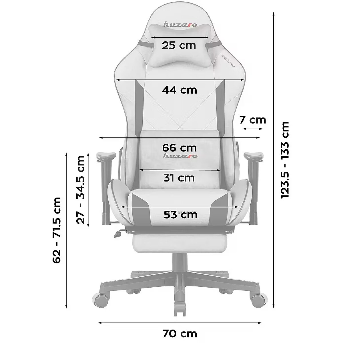 Dane techniczne: Zakres regulacji wysokości - 123.5 - 133 cm