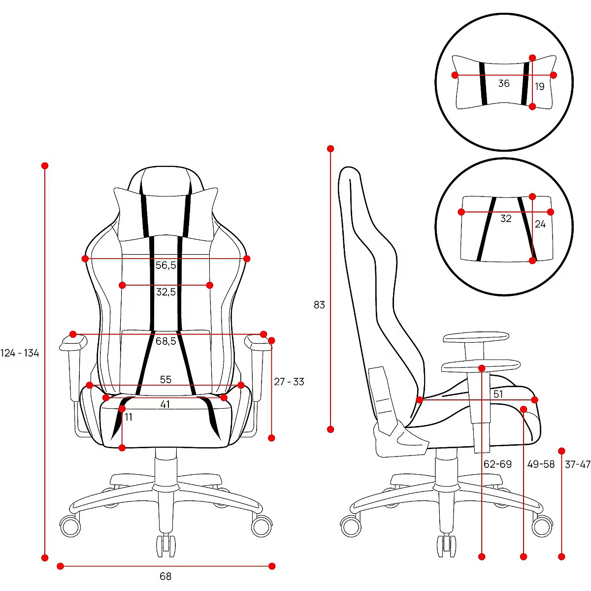 Dane techniczne: Inne cechy - fotel przeznaczony dla osób o wzroście do 180 cm