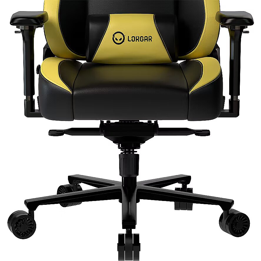 ProductDescription - LORGAR Base 311, Gaming chair, PU eco-leather, 1.8 mm metal frame, multiblock mechanism, 4D armrests, 5 Star aluminium base, Class-4 gas lift, 75mm PU casters, Black + yellow