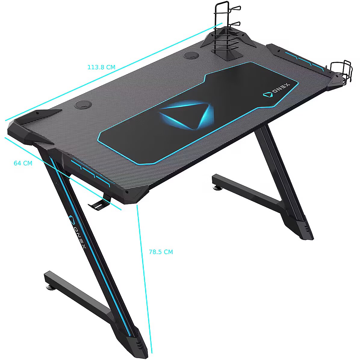 Name - Onex | RGB Gaming Desk w/Cup holder, headset hook, Gamepad holder, 114cm(w) | GD1200Z | Black