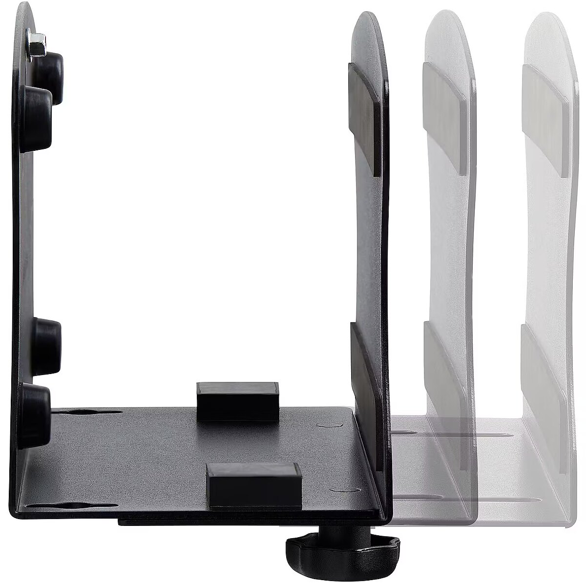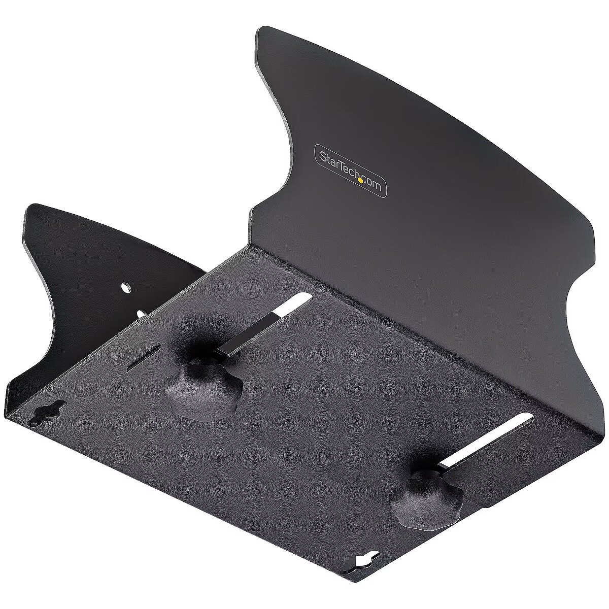 ShortSummaryDescription - StarTech.com PC Wall Mount Bracket, Supports Desktop Computers Up To 40lb (18kg), Tool-Less Adjustments 1.9-7.8in (50-200mm), Heavy-Duty Wall Mount Shelf/Holder for PC Case/Tower, Wall-mounted CPU holder, Desktop, 18 kg, Black, Plastic, Rubber, Steel, Vertical