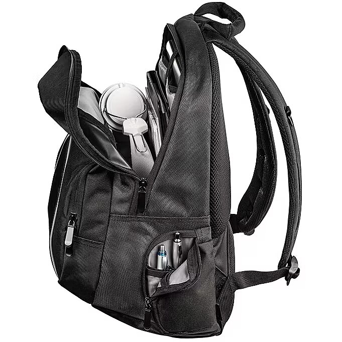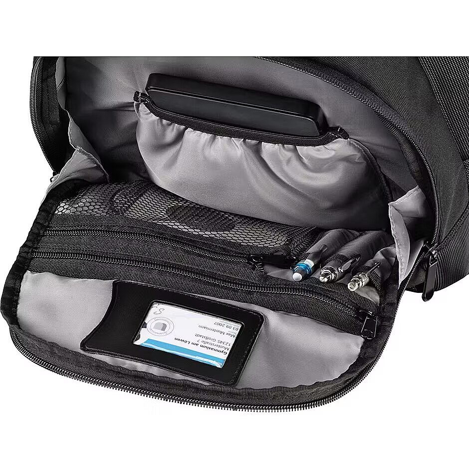 LongDesc - - Padded laptop compartment for reliable protection during transportation- Padded back for ergonomic and comfortable carrying- Spacious front pocket for additional accessories or personal items- Organizer structure in the front pocket makes it easy to find accessories being stored- The document compartment means that important documents, folders or your notebook are immediately within reach- Slim, padded shoulder straps for comfortable carrying without constriction- Convenient handle with fabric sheathing for a pleasant carrying experience