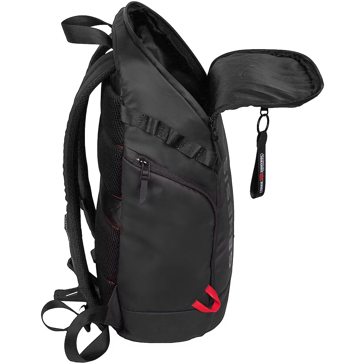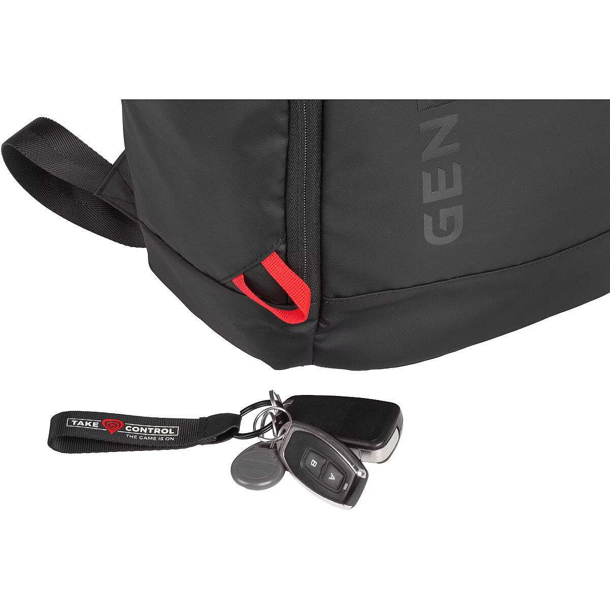 We haven't forgotten about additional features that make the Pallad 420 backpack even more practical. The trolley strap allows for convenient carrying on a suitcase, and the red handles on the side pockets are perfect for attaching a carabiner. The main compartment zipper features a detachable lanyard-style key holder with the GENEISIS logo, and additional accessories can also be attached to the chain-style handles on the sides of the backpack. The stylish black and red color scheme makes the Pallad 420 a perfect match for any outfit and style, making it not only functional but also a fashionable accessory for gamers of all ages.