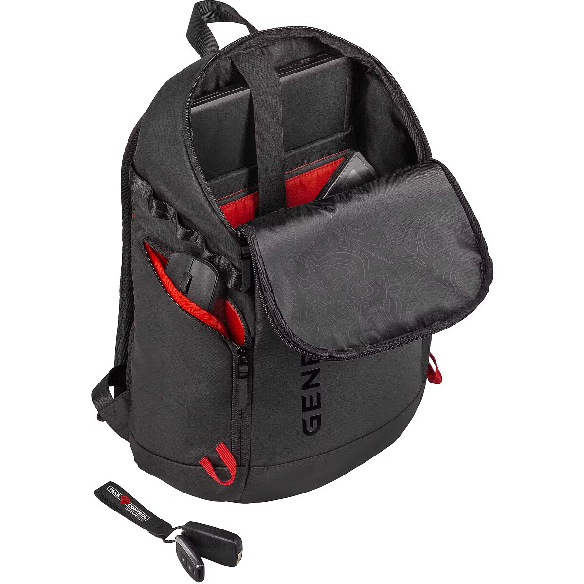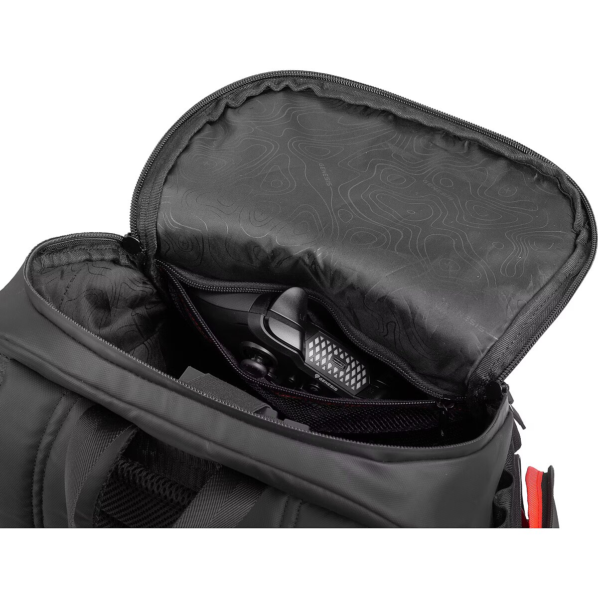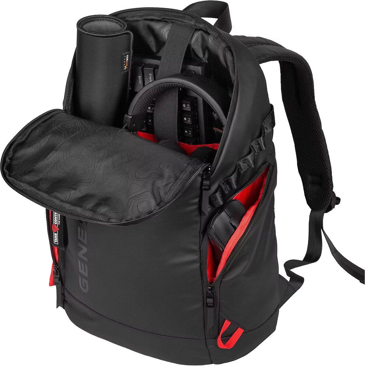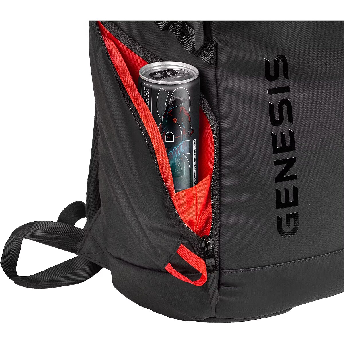 LongDesc - Meet the new GENESIS Pallad 420 backpack, created for discerning gamers who need a small and functional solution to carry their equipment in everyday situations. The Pallad 420 is comfortably lightweight, compact in design and versatile in use. Thanks to its many compartments and hooks, you will easily organize all your accessories, keeping them neat and convenient. What else does the lightest backpack in the GENESIS range have to offer? PROTECTION FOR YOUR GEAR With the Palladium 420, you are assured that your gear will arrive safely where you need it. The backpack's main compartment is padded and cushioned, providing maximum security for laptops up to 15.6 inches. Additional pockets and compartments are designed to accommodate, for example, a mouse, keyboard, standard-sized mouse pad and headphones or pad. Inside you'll also find a mesh pocket with a zipper closure, ideal for carrying small items and accessories, and 2 smaller compartments on the sides for drinks or additional equipment. NEVER FEAR ABOUT ABRASION OR SPLASHING The GENESIS Pallad 420 backpack is made of top-grade polyester, which is highly resistant to splashes, abrasions, tears and scratches. The zippers, both in the main compartment and in the pocket on the front, are waterproof, further protecting your gear from adverse weather conditions. LIGHTWEIGHT, MOBILE, COMFORTABLE Carrying the Pallad 420 backpack is a pure delight! Thanks to the ergonomic back, padded with soft foam covered with mesh material, you will avoid back pain and overheating, even on a warm day and with a maximally loaded backpack. The comfort is further enhanced by the contoured foam-padded shoulders. The backpack is also extremely lightweight, which, combined with the possibility of adjusting the straps, ensures maximum wearing comfort in any situation: at school, university or during city trips. MEDAL-WORTHY FUNCTIONALITY Finally, we did not forget about additional features that make the Pallad 420 backpack even more practical. The trolley strap allows you to carry it comfortably on a travel suitcase, and the red handles on the side pockets are perfect for attaching a carabiner. The zipper of the main pocket has a detachable key holder in the form of a lanyard with the GENEISIS logo, and additional equipment can also be attached to chain-type handles on the sides of the backpack. The stylish black and red color scheme makes the Palladium 420 a perfect match with any outfit and styling, making it not only functional, but also a fashionable accessory for gamers of all ages.