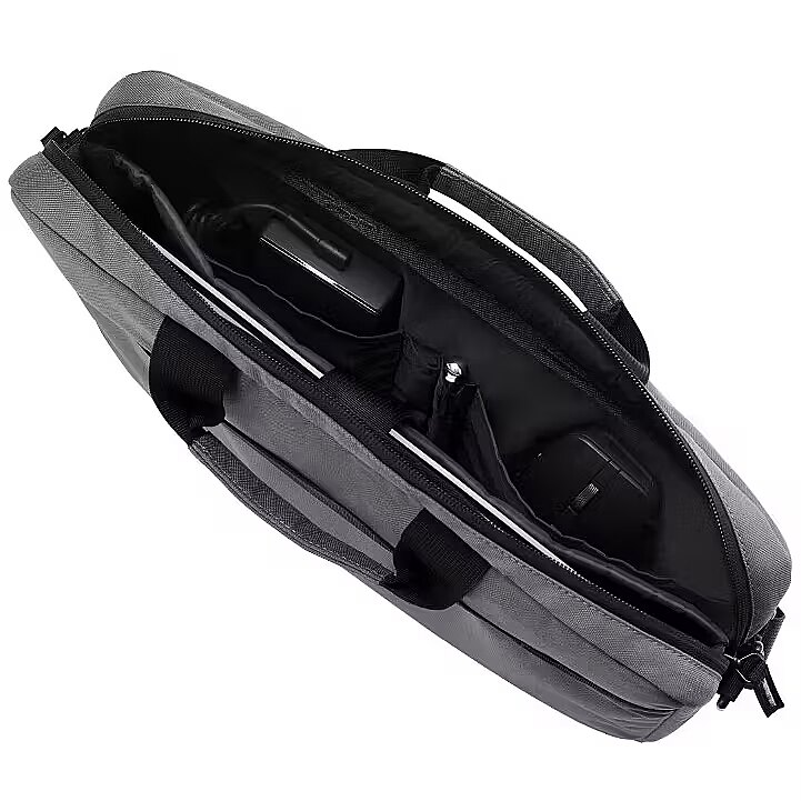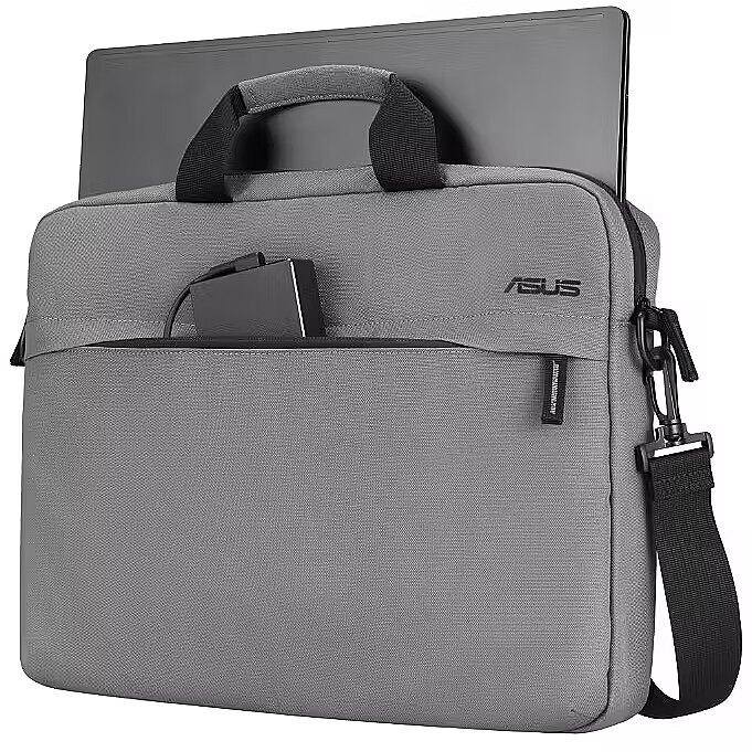 Description - ASUS AC1600 Carry Bag Padded top handles for comfort and a detachable strap for over-the-shoulder convenience Large internal compartment for up to a 16-inch laptop Well-organized interior pockets to store a phone, power bank, and other necessities Lightweight design is ideal for frequent on-the-go use Compact, Sleek and Travel-Ready The slim and lightweight ASUS AC1600 Carry Bag offers plenty of space for up to a 16-inch laptop and other essentials. Plus, an integrated luggage strap allows for easy attachment to a suitcase, making travel more convenient than ever. Quick-Access Pockets Conveniently-placed pockets on the front and in the main compartment allow users to store and easily retrieve a phone, power bank, or other necessities. Water-Repellent Protection The smooth, water-repellent and abrasion-resistant exterior shields gear and devices from the elements.