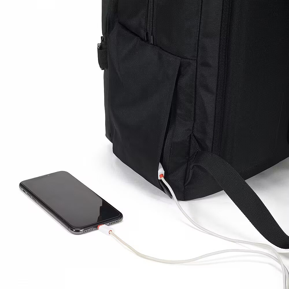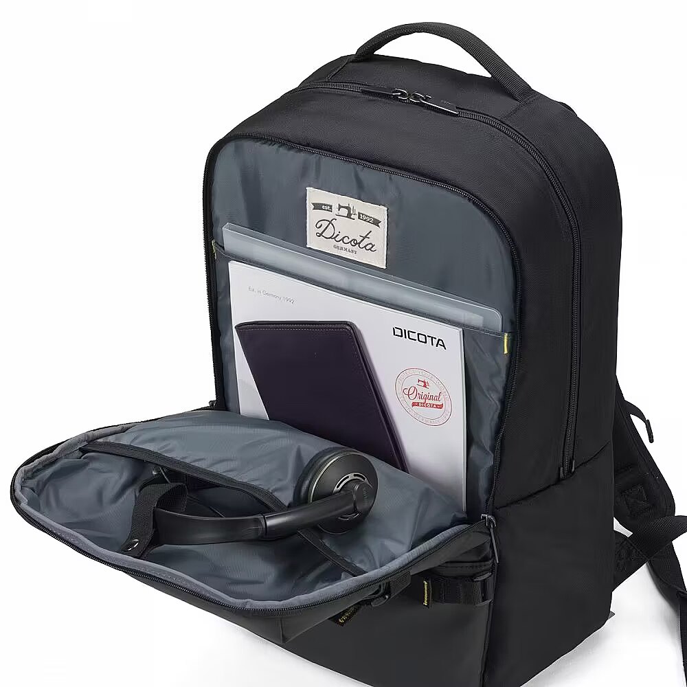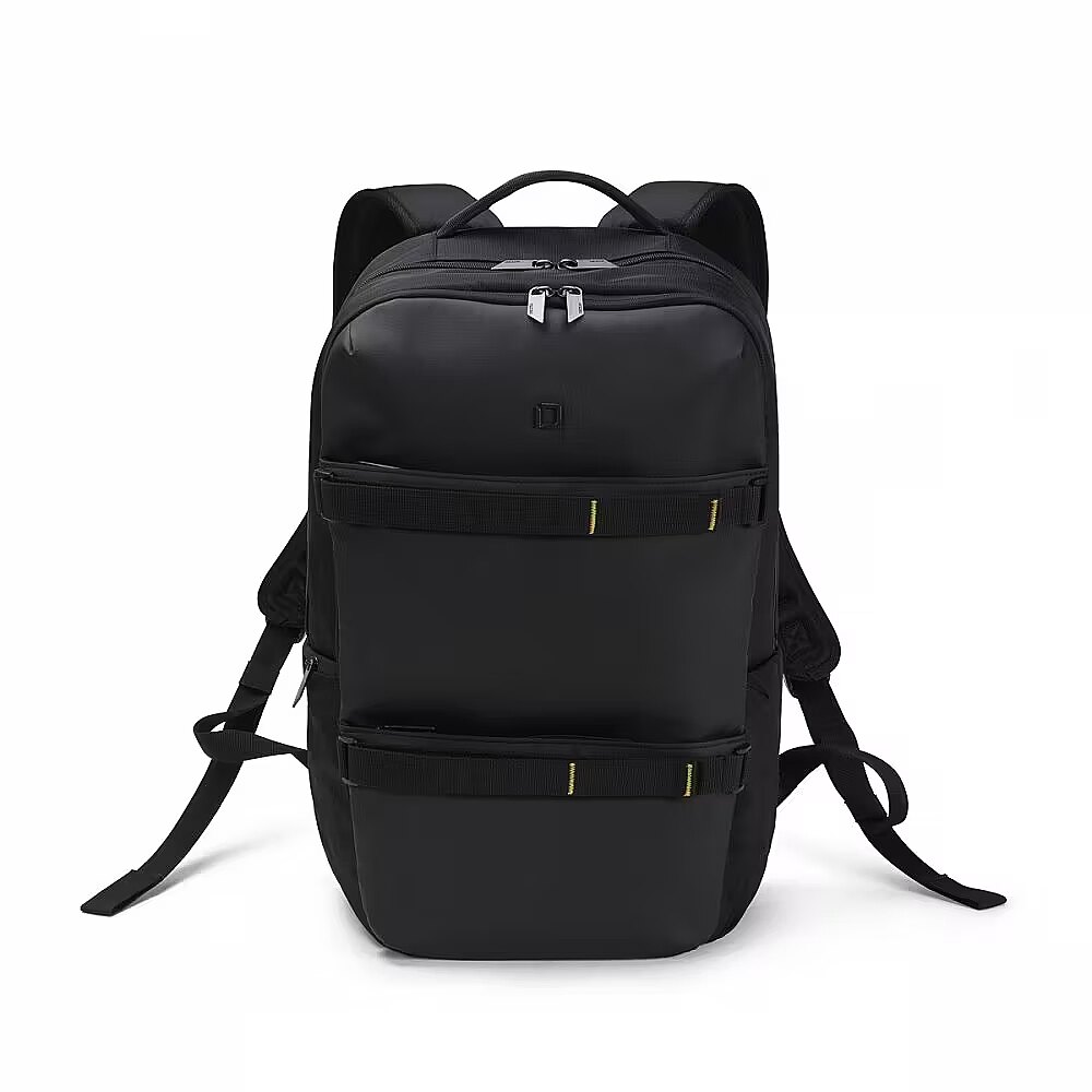 Description - From yoga classes to the office. MOVE is designed for daily use. Comfortable thanks to its ergonomic back cushioning and cushioned shoulder straps with an adjustable chest belt. Perfectly manoeuvre your backpack thanks to the two handles for carrying. The fabric is made of water-repellent materials but in case of thunderstorms, the backpack also includes a rain cover with a reflective DICOTA logo. The primary storage area contains a notebook compartment cushioned with High Density Foam (HDF), a padded slip pocket for tablets up to 10.5 inches, a divider for documents and an elastic mesh pocket to hold your drink bottle. The second main compartment contains dividers for headphones and folders. Enjoy the bag's functional details everywhere you go. The Backpack MOVE features two adjustable straps at the front that can hold a yoga mat or a jacket. The two front pockets can be used to store accessories such as pens, charging cables or smartphones. The right-hand side pocket (looking at the backpack from the front) is designed to charge your devices on the go. Place your power bank inside and connect to your phone. The pocket on the left-hand side can be used for quick access to water bottles, umbrellas and key cards. This backpack comes with the Quick & Easy Lock System form YKK. This system easily locks the zippers, securing your backpack in seconds. Pull the two zippers together to lock them, or unlock them by pulling the sliders down into the lower plastic part. The backpack is available in two colours.