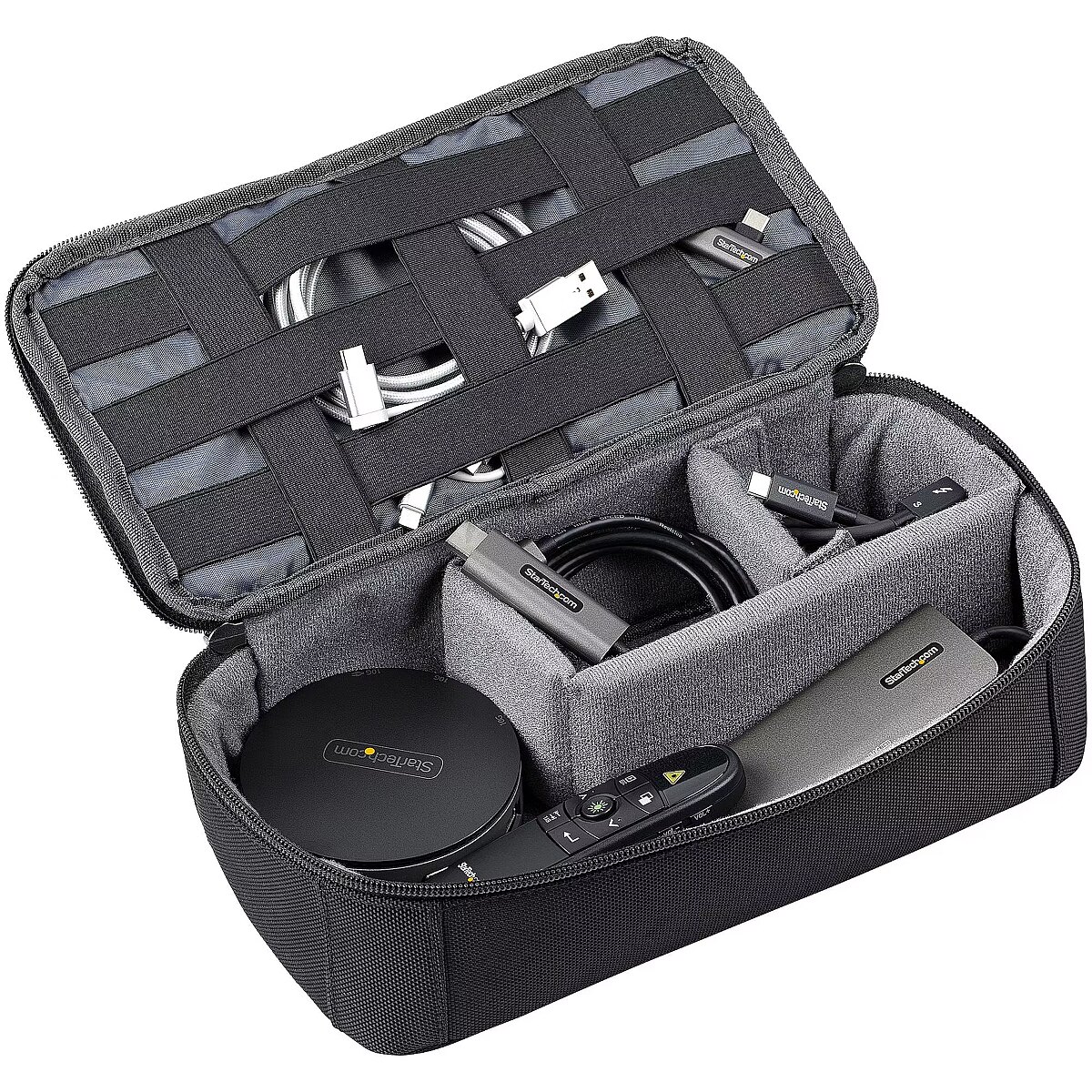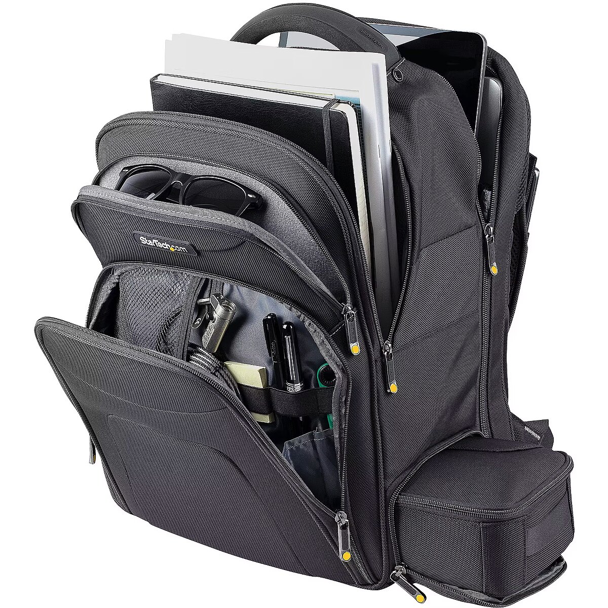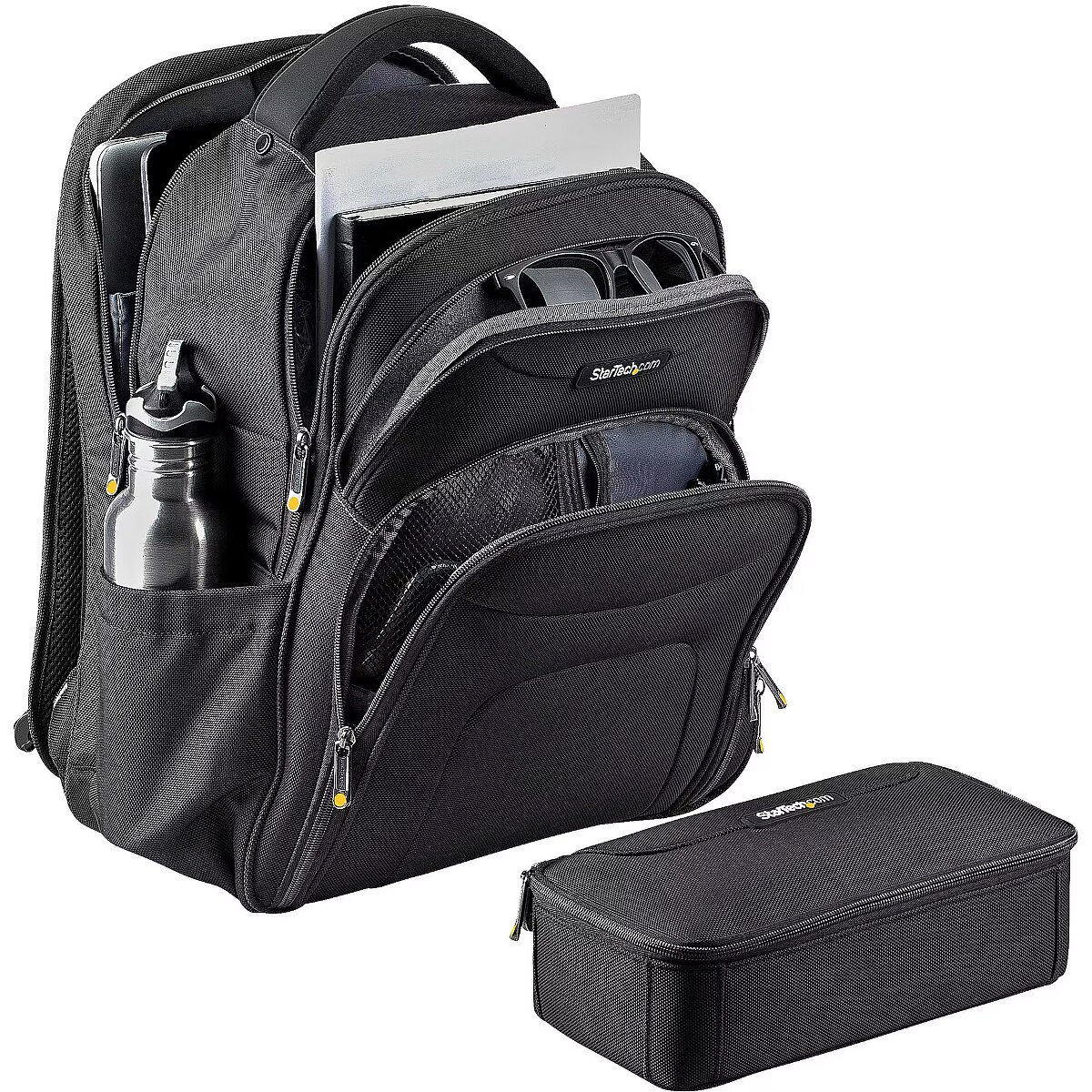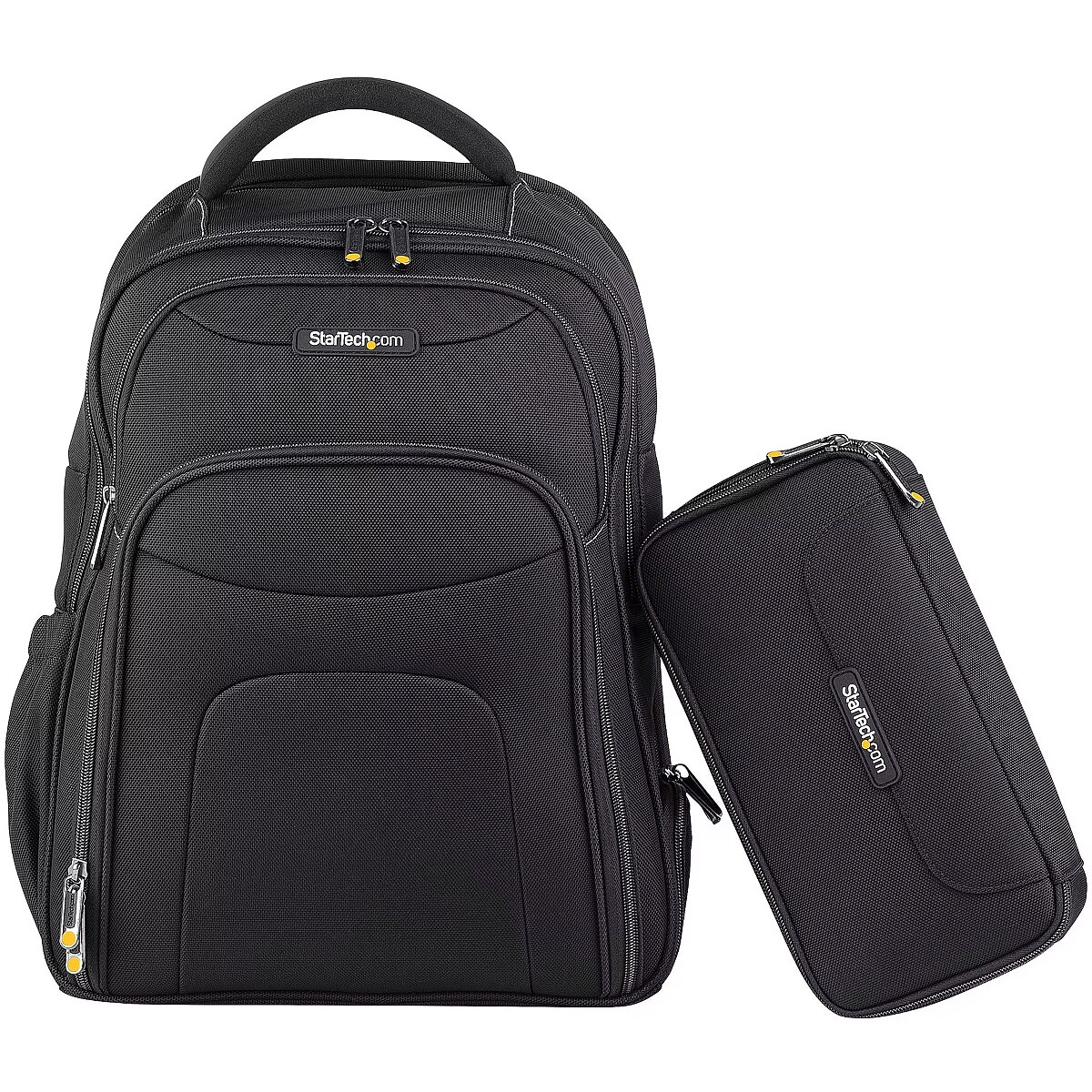 LongDesc - Professional IT Backpack for Work/Travel/Commute | Tablet Pocket & Laptop Sleeve | Removable Accessory Case17.3" Laptop BackpackThis laptop backpack is designed and built with IT Professionals & Technicians in mind. For short or long-distance commutes, this travel-friendly IT backpack can carry your 17.3" laptop and tablet with you wherever you go. Equipped with an accessories case that can be easily removed and fits all of your IT accessories, including your laptop charger, display adapters, wireless mouse, tools, measurement instruments, and more. The laptop bag and accessory case are constructed of heavy-duty ballistic nylon to keep your items secure.Removable Case for IT AccessoriesThe removable travel accessories pouch (10.5in x 5.25in x 3in) is stored in its own compartment and was designed to be easily accessed using the lower side pocket of the backpack to avoid searching through or displacing other items. The hook and loop dividers can be adjusted or removed to suit your needs, and the bungee grid is perfect for storing smaller IT accessories and cables. With the case removed, the main compartment can be expanded to offer more room for any other essentials required for a short or long-term trip.Ergonomic and Travel FriendlyThe computer bag features breathable ergonomic padding to help relieve strain and maximize comfort. It is designed for short distance (ie. daily commuting) and long-distance travel (ie. tradeshows and customer visits). The laptop bag features adjustable shoulder straps and a handle that is easy to grip. The laptop backpack meets most airline and TSA carry-on requirements and allows you to bundle your travel bags and rolling luggage using the integrated trolley sleeve.Thoughtful DesignThere are a variety of practical pockets, including a velvet-lined pocket to store sensitive items, a pocket for water bottles, and a pocket on the shoulder strap (to keep your phone, passport, or work badge easily accessible), among others.This notebook backpack is backed by a StarTech.com limited lifetime warranty, and free lifetime technical support.The StarTech.com Advantage