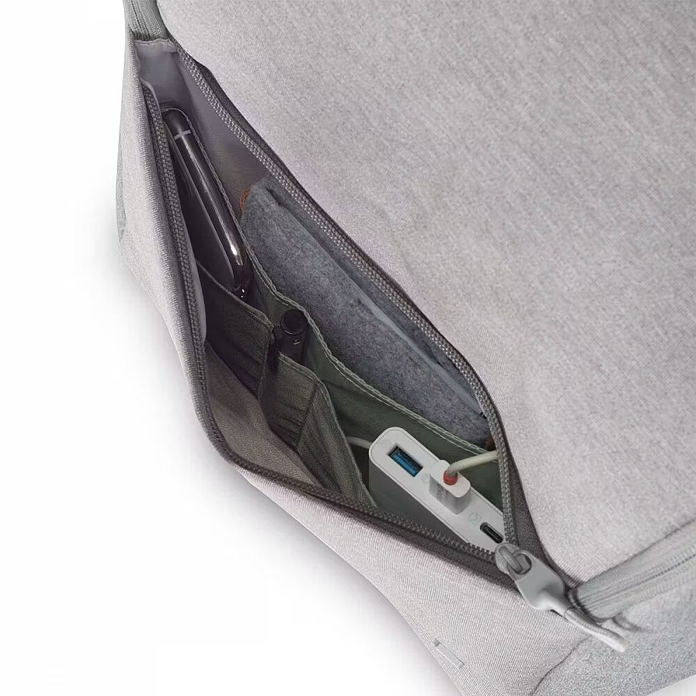 Plecak Eco Backpack MOTION optymalnie chroni laptopa 13-15,6" dzięki komorze na notebooka wyściełanej pianką o wysokiej gęstości (HDF). Kieszeń na tablety zapewnia niezawodną ochronę urządzeń o przekątnej do 12,9". Przestronna komora główna jest podzielona, dzięki czemu dokumenty i akcesoria można przechowywać osobno. W komorze głównej znajduje się również kieszeń z siatki, w której można schować butelkę do picia. Przednia kieszeń z praktycznymi kieszeniami umożliwia uporządkowanie akcesoriów mobilnych, takich jak smartfony, długopisy czy ładowarki. Dodatkowy zamek z boku plecaka zapewnia szybki dostęp do komory głównej. Plecak wygodnie leży na plecach dzięki ergonomicznej wyściółce. Aby jeszcze bardziej zoptymalizować komfort, wyściełane szelki można również dowolnie regulować. Torba wykonana jest z wodoodpornego materiału, który chroni zawartość nawet w deszczowe dni.