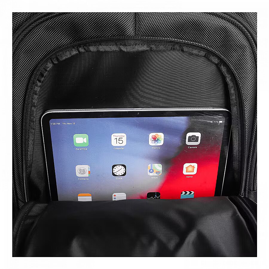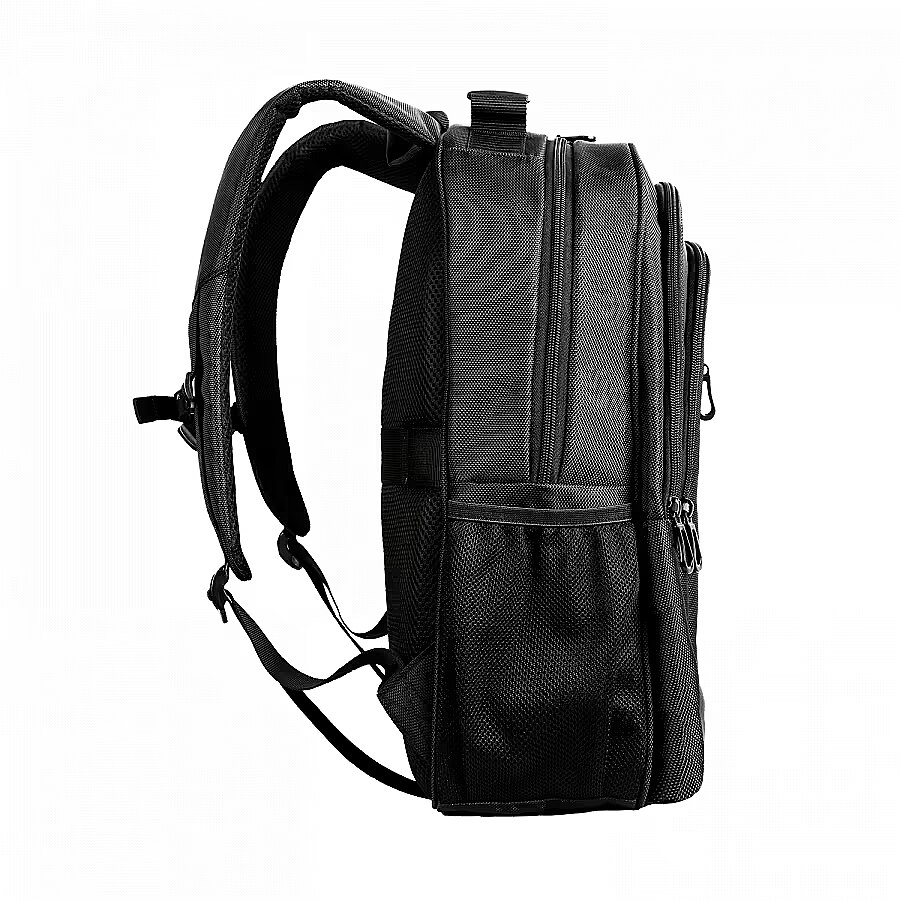 LongDesc - The 16" Professional Business Backpack is sleek, durable and made from weather-resistant material. The backpack features a well-padded laptop compartment to keep devices secure. The cushioned handle and padded back of the bag make it comfortable to carry either way. The backpack features three zippered compartments; one for books or clothing, one organizer/workstation, and the outside, quick-access compartment to grab what you need most often. The backpack also has two water bottle holders to keep your hands free while on the goProfessional Business BackpackA sleek and durable backpack made from weather-resistant material. The backpack features a well-padded laptop compartment to keep devices secure. The cushioned handle and padded back of the bag make it comfortable to carry either way.Large capacity22L capacity space with a dedicated well-padded laptop compartment pocketMultiple compartmentsEasy-access organizer compartment with plenty of room for accessories and two mesh side pocketsSecured spaceWeather-resistant, durable material, and RFID pocket protects your chip-based credit card information from skimmers