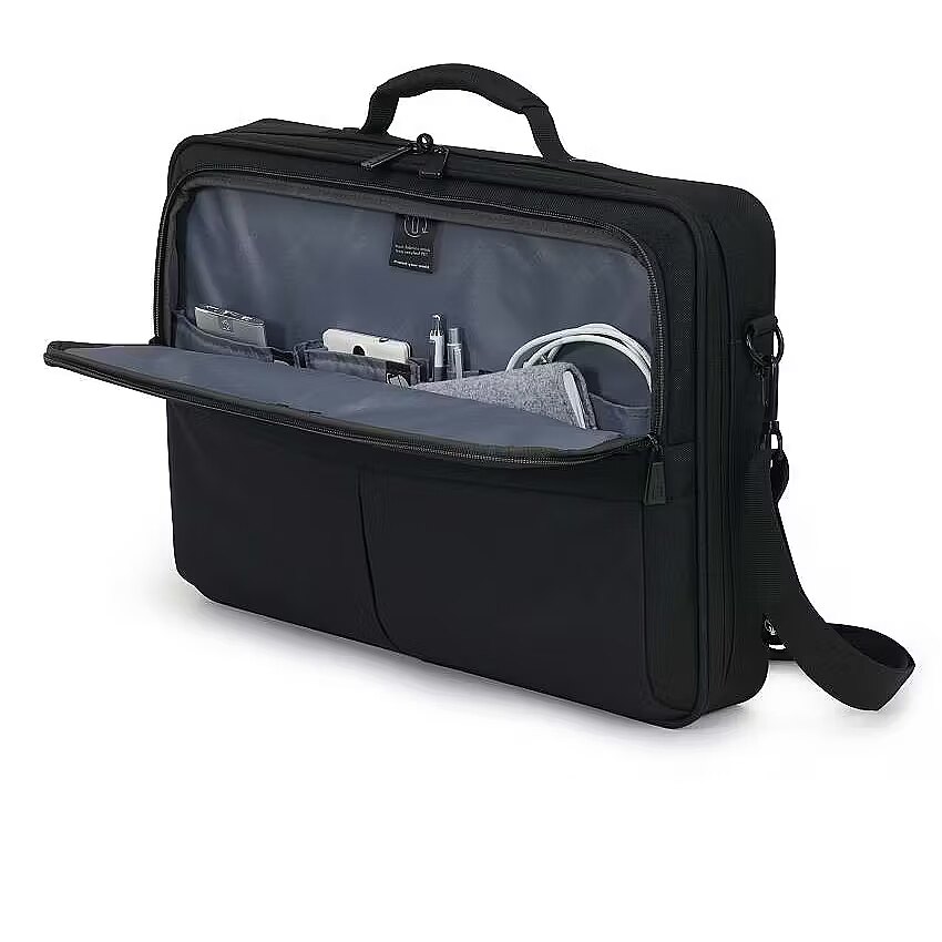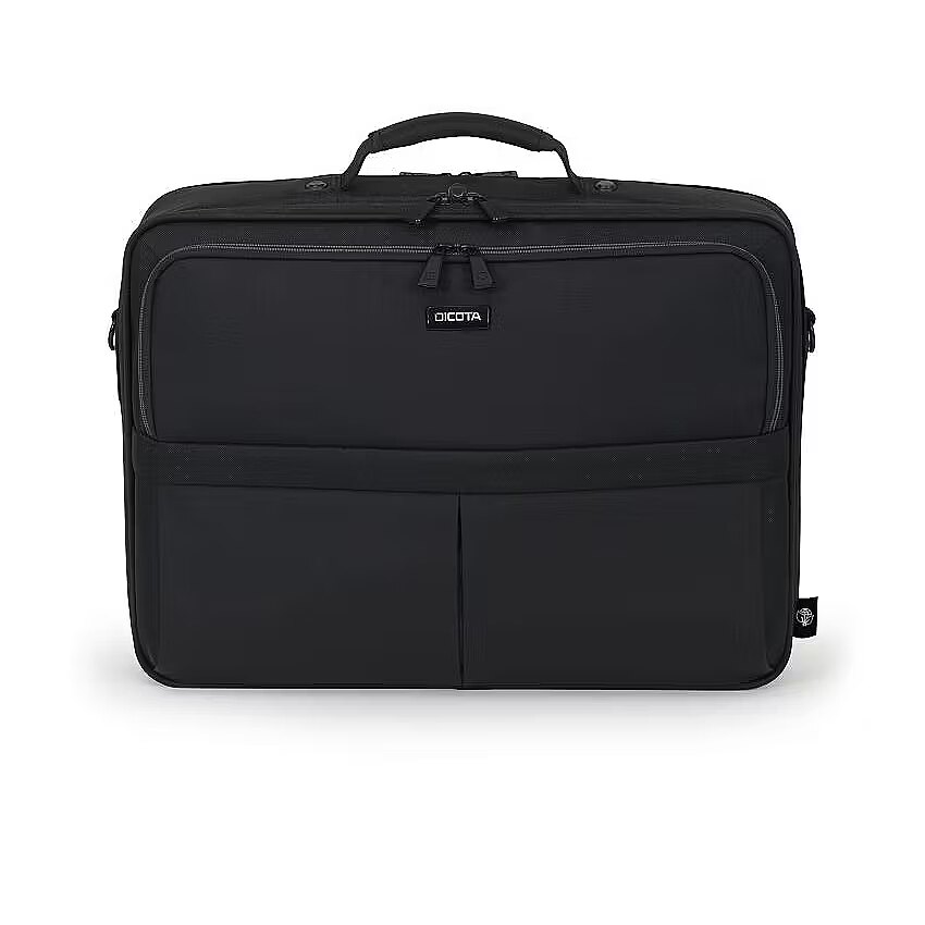 Description - Notebook bag Eco Multi Scale 15-17.3 inches, black The Eco Multi SCALE offers excellent protection for your devices and is comfortable and easy to carry. Designed for daily use. Equipped with practical functions that make your life easier. There's triple protection for your 15-17.3" laptop in the lockable main compartment: with surrounding high-density foam padding (HDF), a metal-reinforced frame, and reliable fastening thanks to the fastening strap and an adjustable divider. Even your tablet up to 12.9" can be safely stored in the padded slip pocket. The spacious front pocket helps you keep things organised with its functional division into compartments for a smartphone, portable charger, pens and other mobile accessories. Documents can fit into the separate slot on the back of the bag. The comfortably moulded riveted carrying handles, an adjustable padded shoulder strap, and the trolley fastening strap on the back of the bag ensure that it is both flexible to use and comfortable to transport. The Eco Multi SCALE is perfect for you if you are always on the go and want to support the recycling of PET bottles with an eco-friendly bag.