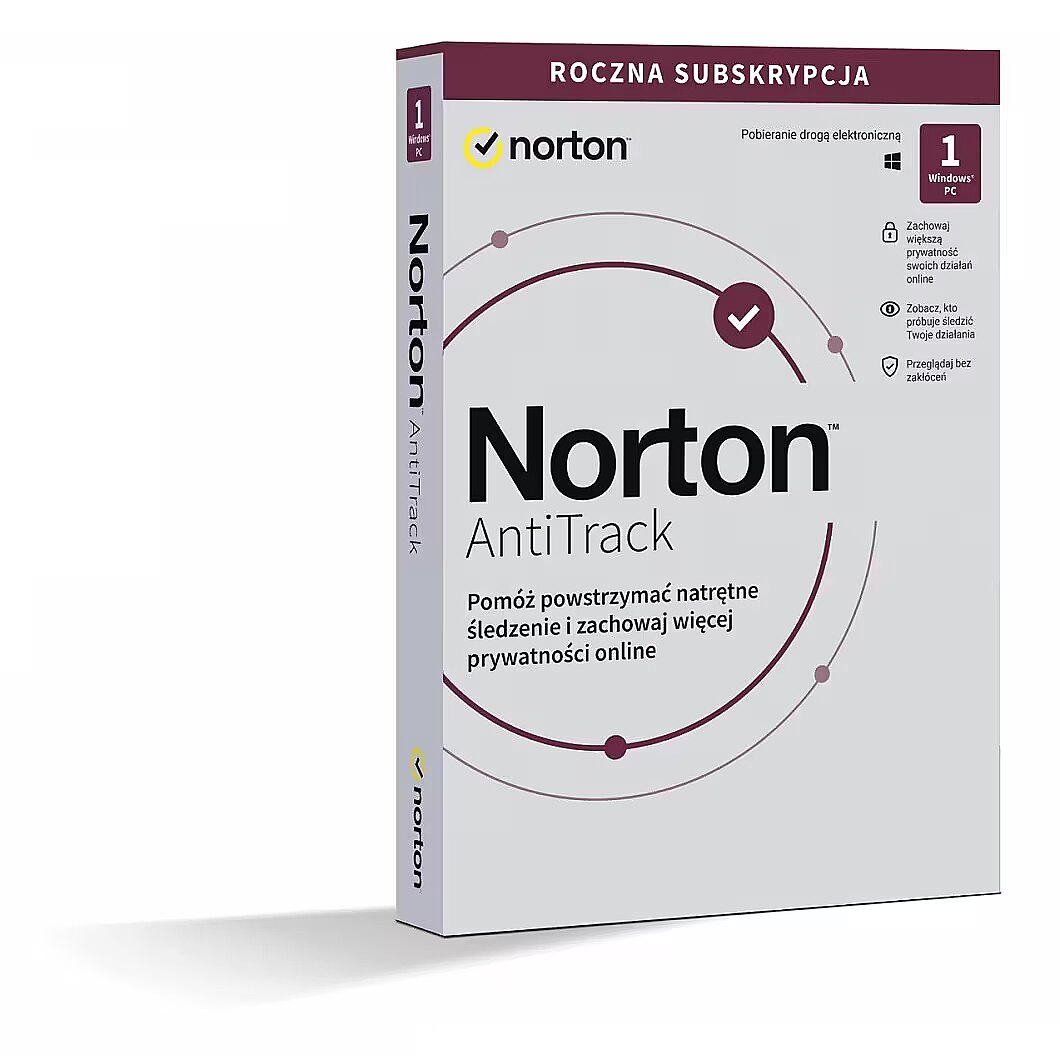 Description - Norton AntiTrack (For Windows PC) Norton AntiTrack helps you minimise your online footprint as you browse. Help stop intrusive tracking and maintain more privacy online. Keep your online activities more private Norton AntiTrack helps obliterate your online footprint to better prevent tracking and profiling by websites, so you can browse the internet with more privacy. Ensure greater privacy with more than just incognito browsing or VPNs Norton AntiTrack offers more than just incognito browsing or VPN browsing, more effectively preventing companies from profiling users, and it does so in a different way to other tools. See who is trying to track you We show you which sites may be trying to track you and how we help protect your privacy. Browse without interruption While other privacy tools may cause problems viewing sites or show you annoying warnings, Norton AntiTrack is designed to let you browse the internet seamlessly without interference or speed loss. Protection from tagging Masks unique identifiers so sites cannot create your profile, helping to prevent companies from sharing information about your online activities with others. Pre-labelling protection provides greater privacy than incognito browsing. Blocking cookies and tracking elements Helps block tracking elements from loading the page, improving loading speed. Helps take care of the privacy of your online activities by more effectively preventing companies from tracking them. Detects cookies used to track your activities and makes it more difficult to collect data about your behaviour. Tracking dashboard Provides information and statistics on tracking attempts and classifies them by threat level.
