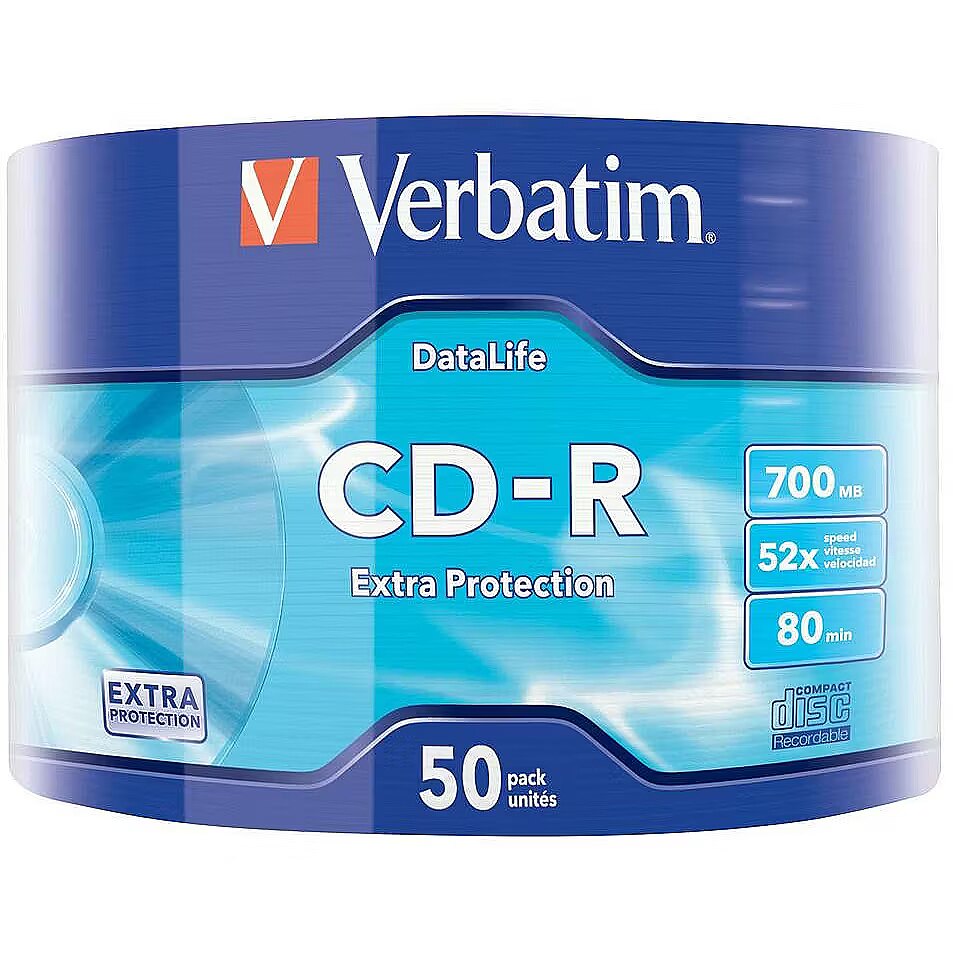 LongSummaryDescription - Verbatim CD-R Extra Protection. Type: CD-R, CD storage capacity: 700 MB, Quantity per pack: 50 pc(s). CD write speed: 52x