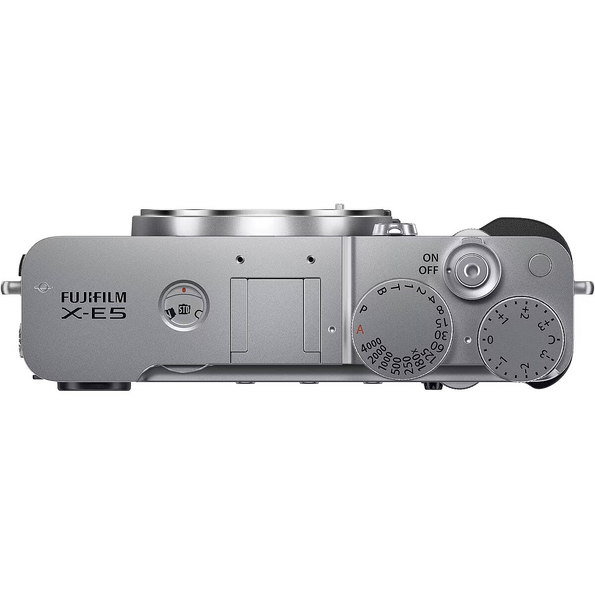 X-E5 disainis on iga detail hoolikalt läbimõeldud. Näiteks on pildiotsija ja dioptrikorrektsiooninupp korpusega tasaselt integreeritud, samal ajal kui alumisel plaadil olev Bluetooth-nupp meenutab klassikalise filmikaamera tagasikerimisnuppu. Fotograafia puhas rõõm