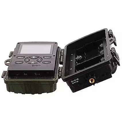 description_en - Image sensor: 8MP Video quality: 4K (3840 x 2160 / 10fps) Photo quality: 20MP (5200 x 3900) PIR sensors: 3 sensors with a range of 20 meters and 125° Recording speed: 0.2 second trigger Three sensitivity modes: Low, Medium and High IRDA LED's: 40 pieces, range 20 meters Recording time adjustable Time lapse: from 1 second to 24 hours Audio recording: adds audio to video recordings. (With optional microphone) Time display on the recordings possible Optionally secured with a PIN code Memory card: expandable to max. 256GB Micro SD card (Class 6 or higher) 2,4" TFT LCD screen for reviewing video and photos Operating temperature: -7°C to +40°C IP66 protection: Protected against ingress of dust and resistant to downpours. Standby: 12 months battery life (with 8 AA batteries) Power supply: 8xAA batteries or 6V power adapter