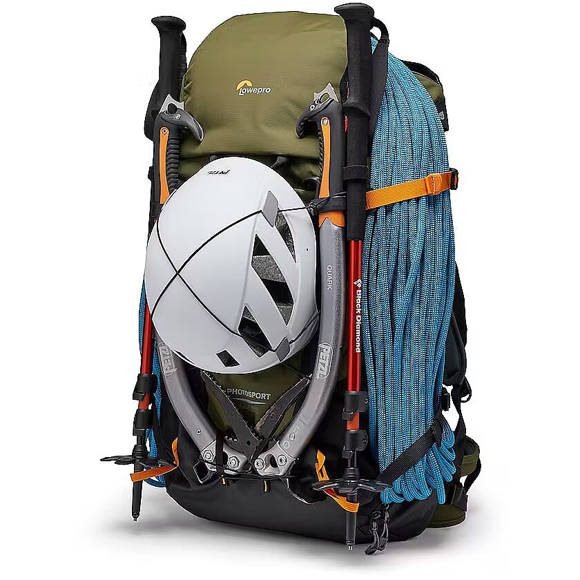description_en - High-performing outdoor camera backpack for intense outdoor photo and video assignments Perfect fit with GearUP Pro Camera Box L, XL and XXL Extra lightweight & made with 84% recycled fabric Functional back access to removable GearUp camera insert Features Medium/Large shoulder straps and ActivLift™ harness Mountaineering specific harness system & dedicated features The new Lowepro PhotoSport X 45L Backpack is built for professional photographers and videographers who need a superior lightweight, performing bag that perfectly suits their gear and is capable of withstanding extreme outdoor conditions. Perfectly designed to match daily and overnight photography and videography intense missions, it has been developed to face the most demanding professional assignments in mountaineering environments. Since X stands for cross-functionality, the Photosport X is the best performing outdoor camera backpack of the range and it has been designed not only to be the best sports camera backpack for skiing but to cover all the activities practised in the mountains all year-long - From mountaineering to ice climbing, from overnight via ferrata to ski touring, the new X series is equipped with plenty of features dedicated to easily carry ice axes, ropes, climbing equipment, skis, a helmet plus all the key mountaineering essentials to achieve the mission. No compromises for the long haul with the ActivLift™ harness system with torso length adjustment – built to provide a comfortable fit and weight distribution for optimal mountaineering activities. The new Photosport X outdoor camera bag is equipped with a new suspended insert connection which gives better protection and stabilisation for GearUp Inserts - compatible with both GearUP Camera Box L, XL and XXL, the Photosport X range is not provided with a camera insert in order to leave up to the professionals the maximum freedom of choice depending on the assignment Built rugged and made of 84% recycled fabrics and it includes All Weather AW Cover™ to protect gear from rain, snow and dust.