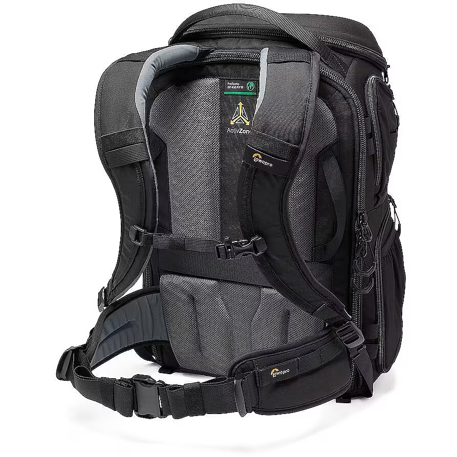 ProTactic BP 450 AW III спроектирован для обеспечения комфорта благодаря ремням двойной плотности ActivZone™, нагрудному ремню SlideCam и съемному мягкому поясному ремню. Задняя панель из формованного этиленвинилацетата с перфорацией и волнистым рисунком увеличивает поток воздуха, а дополнительная поясничная опора обеспечивает дополнительную поддержку, особенно при ношении ноутбука. На задней панели имеются две ручки, которые, а также верхняя и нижняя ручки, обеспечивают легкий доступ к контейнеру во время путешествия. Устойчивость и долговечность