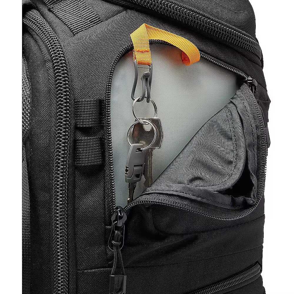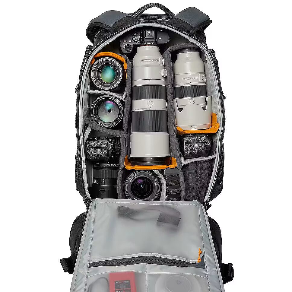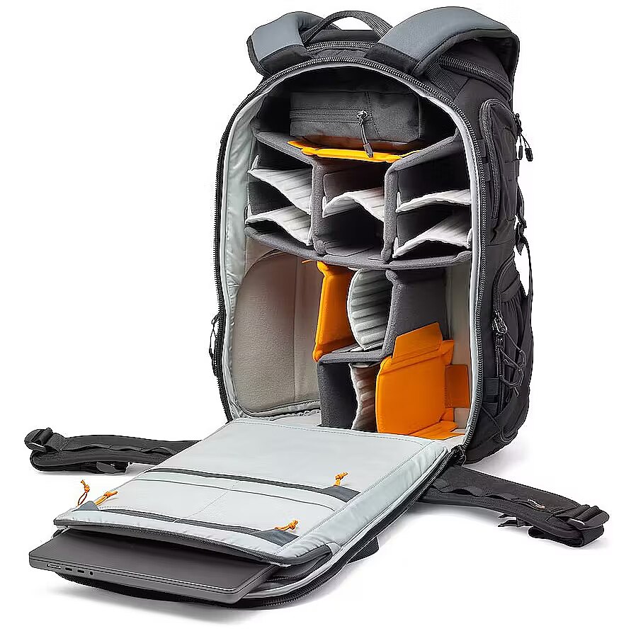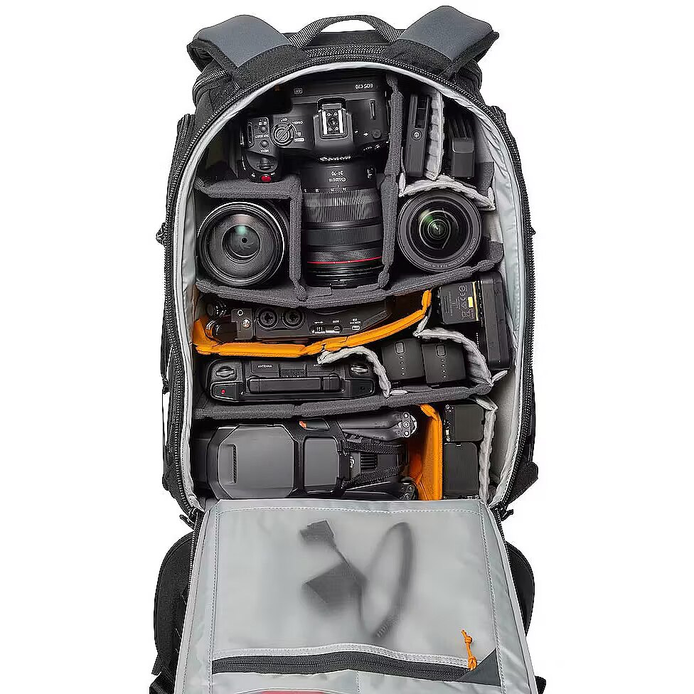 Koti tagaukse seest leiad tõmblukuga läbipaistvad taskud CradleFit sülearvutitaskult, mis mahutab kuni 16-tollise MacBook Pro. Külgmistel ustel on suured venitatavad välistaskud, mis mahutavad kuni 1-liitrise pudeli ja on alt tugevdatud statiivi toetamiseks. Täiendavad aasad ja taskud külgede ülaosas võimaldavad kiiret juurdepääsu esemetele ja turvalist statiivi kinnitust. Seljakott seisab iseseisvalt püsti, muutes selle käsitsemise ja varustusele juurdepääsu lihtsaks. SlipLock moodulkinnitussüsteem ja tarvikud