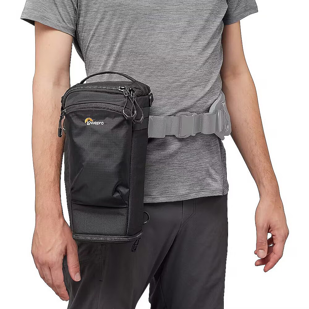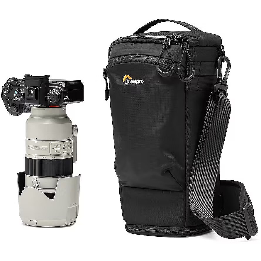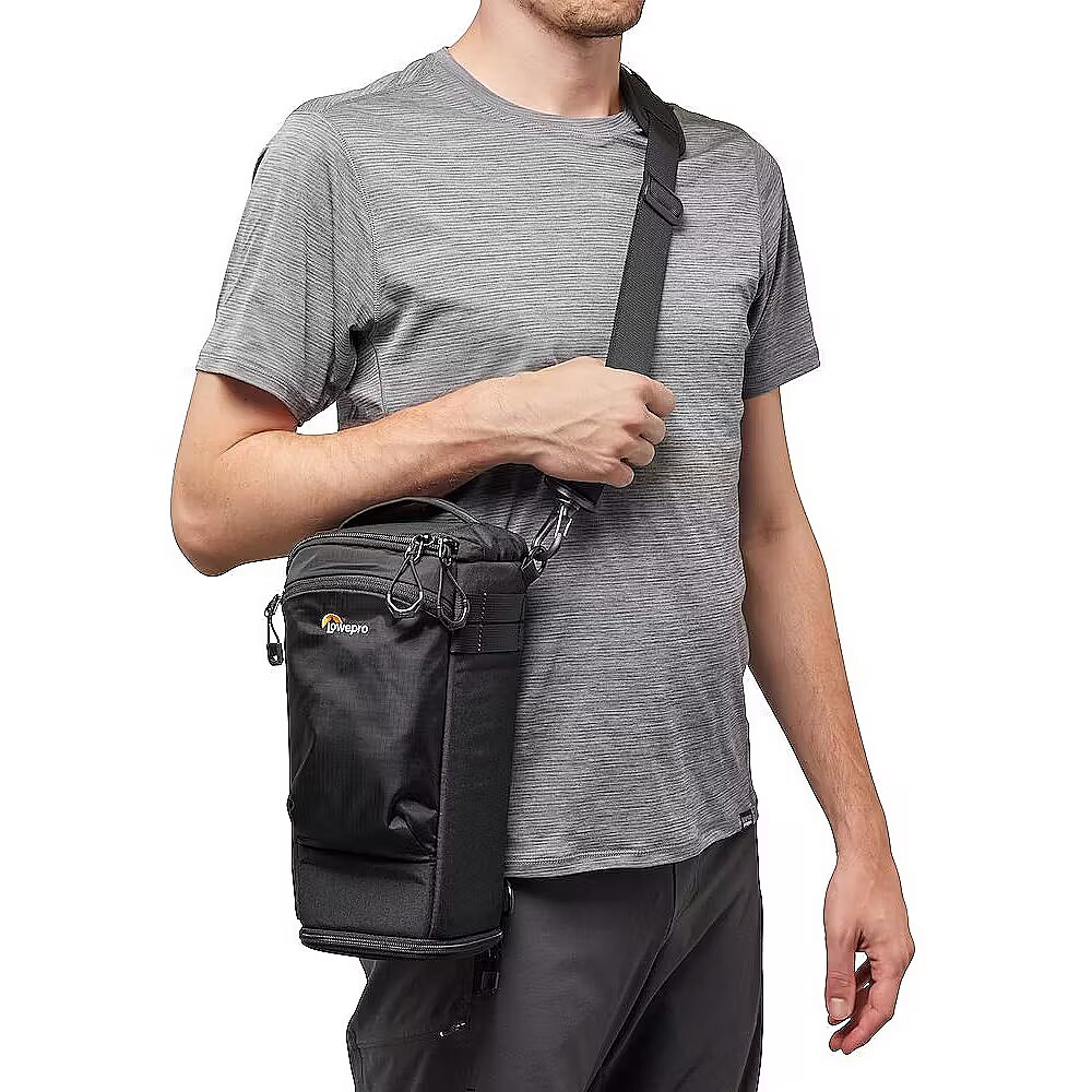 Introducing the ProTactic TLZ 75 Slim AW III, designed for the working photographer shooting events and other jobs all day, largely outdoors. This toploader is sized for a full-frame body without a portrait grip and up to a non-telescoping 70-200 f2.8 lens attached. The bag features an expansion section to accommodate a lens hood in shooting position, and the door wraps to the side for easier grip access. The quick-close buckle allows for fast access, while the interior divider holds the camera near the top for easy removal or divides the bag for a two-lens kit. Versatile Carry Options