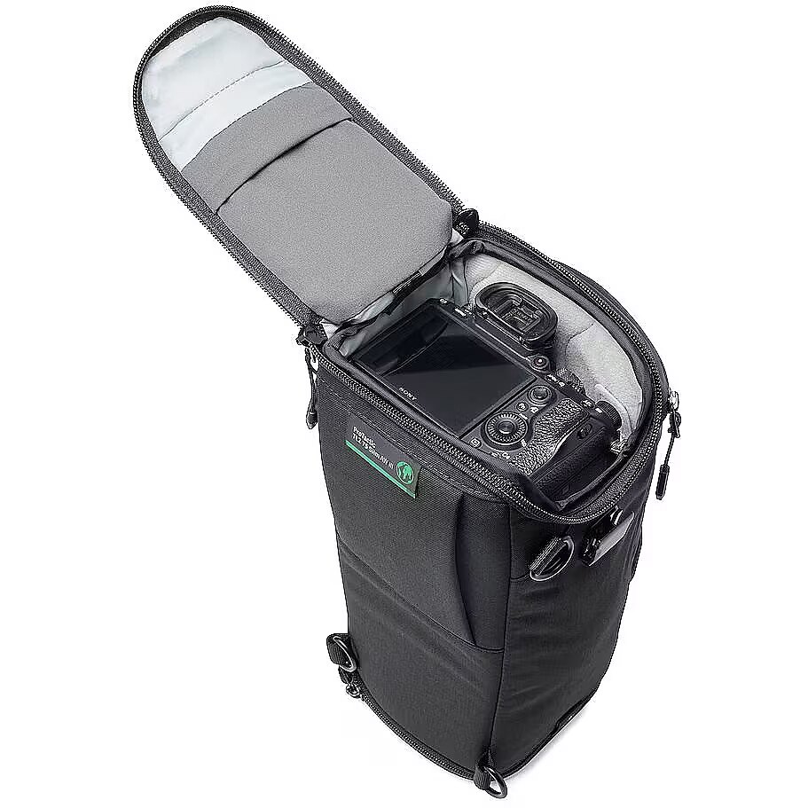 description_en - Slim TopLoader fits full frame body & lens up to 70-200mm F2.8, with expansion for lens hood. Compatible with SlipLock accessories like lens cases Shoulder or chest carry with primary & secondary shoulder straps Belt tunnel for standard 38mm belt or any ProTactic III belt Stowable quick access buckle closure for access on the move Includes All Weather Cover™ 88% recycled fabric* - lab & field tested for durability Adapt to Every Moment
