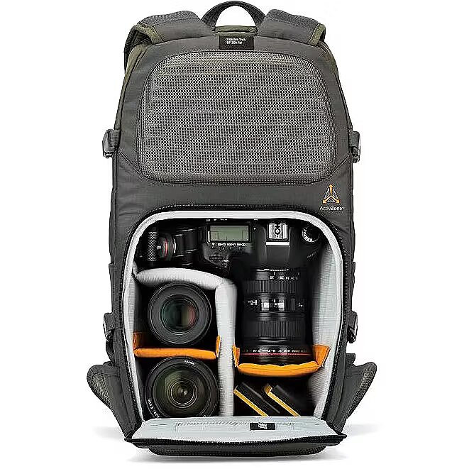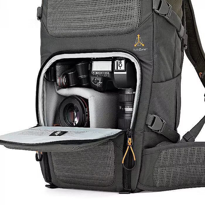 description_en - Outdoor camera backpack for photographers who carry a balance of photo and personal gear for a day in nature. Carries a DSLR camera kit with extra lenses and a 10'' tablet Flipside body-side access with hinged lid to camera compartment Split compartments - Open zone in top of pack for personal items ActivZone™ suspension system provides all-day wearing comfort Multiple attachment points to carry gear outside of your bag