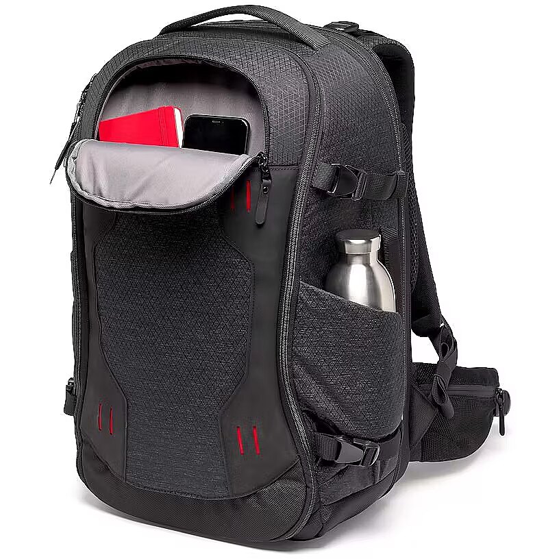 description_short_en - Capacious Manfrotto Pro Light series backpack Fits a mirrorless camera with up to 8 lenses Compartment for up to 15" laptop Expandablepocket & tripod attachment Water repellent design with included DuoFace cover