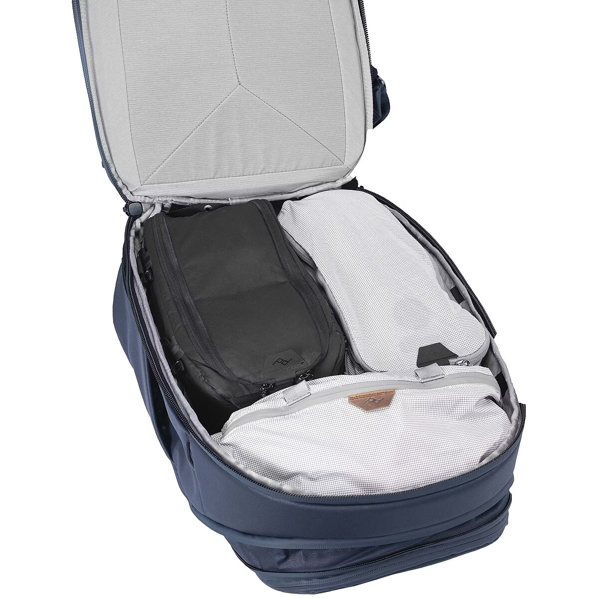 The 30L pack is best suited for: 1-bag-travel for trips 3 days and under. Day bag use: perfect for exploring, commuting, and working, in a new place, or in your hometown. Your carry-on personal item: fits more easily under airline seats. Travel ready International carry-on approved Theft-deterrent zipper pulls Protected luggage tag holder Luggage pass-through for roller bag carry Padded shoulder straps stow under magnetic flaps for worry-free bag-checking Impressive capacity + expansion Huge rear access via burly #10 UltraZip Expansion zips for fitting more or compressing your load External carry straps stow beneath a magnetic flap Space for everything Hugely expandable side pockets for water bottles, tripods, more Large soft-lined zippered top pocket with pockets for keys, glasses, passport, etc. Internal zippered mesh pockets Padded, dedicated laptop and tablet sleeves All-day comfort Axial strap attachments provide all-day comfort for all body types Stowable sternum strap 360-degree grab handles Rugged protection Weatherproof 100% recycled 400D nylon canvas shell Rugged 900D waterproof bottom liner Ultralight padded foam provides security and structure around entire bag High-visibility grey interior Sustainably built Fair Trade Certified 100% carbon neutral Lifetime guarantee PD Travel ecosystem Designed to fit Peak Design Packing Cubes (fits 3 units) Note: only fits Peak Design Camera Cubes when fully expanded. 45L Travel Backpack recommended for carrying lots of camera gear. Differences VS. 45L Simplified access: main access via single rear zip (45L also has side and front access) Larger top pocket: subdivided with internal stretch and zip pockets (45L has smaller, undivided pocket) Single volume: 45L has a removable internal divider not found on the 30L Hip belt not included: 45L has a built-in hip belt, 30L has optional hip belt accessory Less photo-oriented: the 30L only fits PD Camera Cubes when fully expanded. For frequent/heavy camera carry, 45L is recommended
